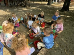 Żabki to nasza grupa 3-4 latków, które rozpoczęły swoją przygodę z przedszkolem od września. Czują się wspaniale i chętnie podejmują różnorodne aktywności.