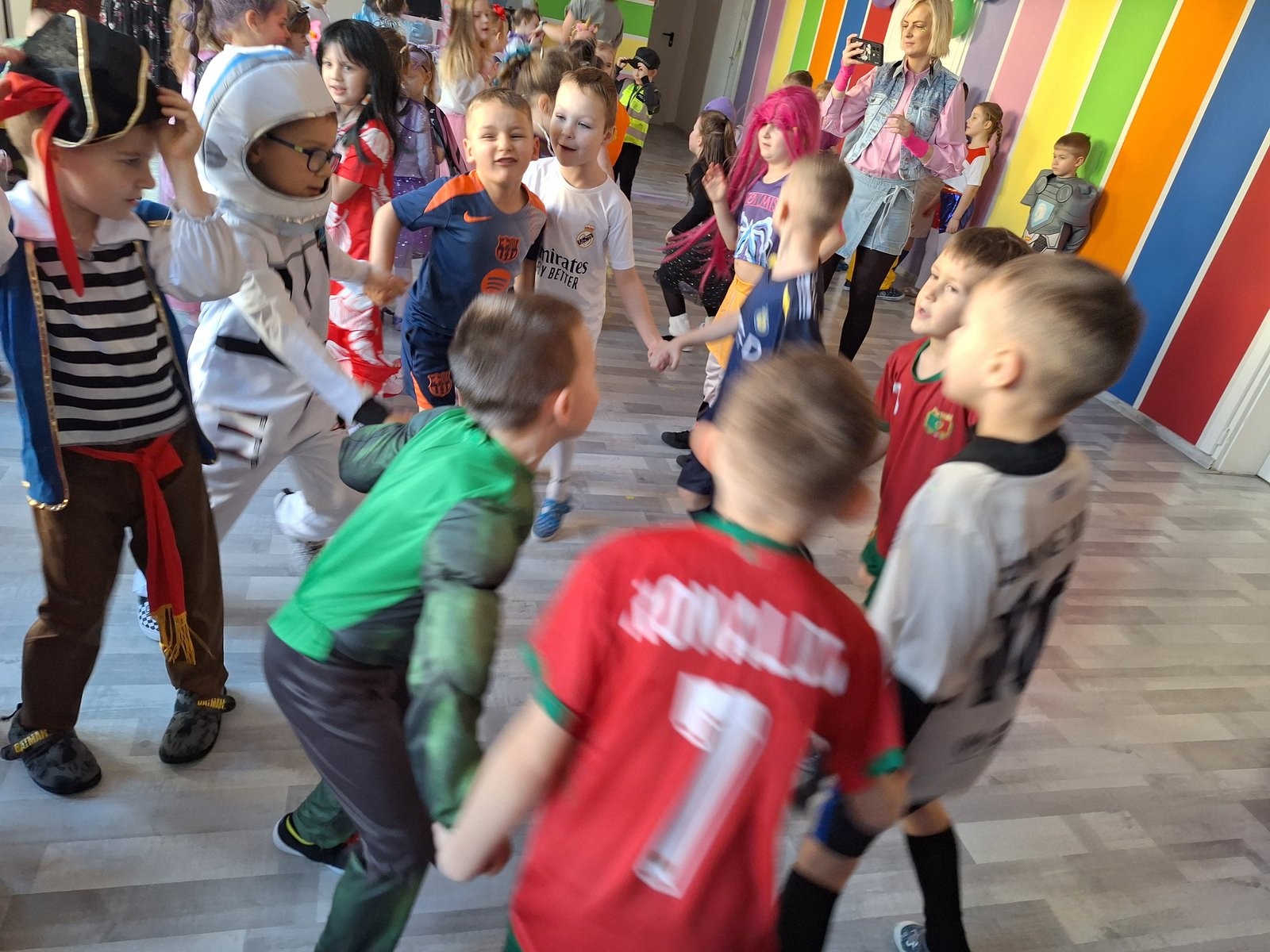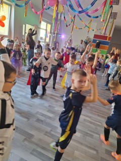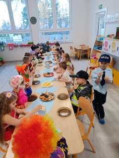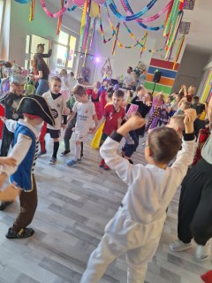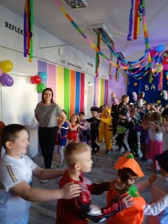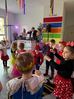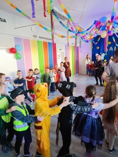 Pan wodzirej przy dźwiękach karnawałowej muzyki porwał wszystkich do wspólnej zabawy. Uczestnicy mieli również czas na pamiątkowe zdjęcia oraz słodkie "co nieco", odpowiednie na tak wyjątkową okazję.