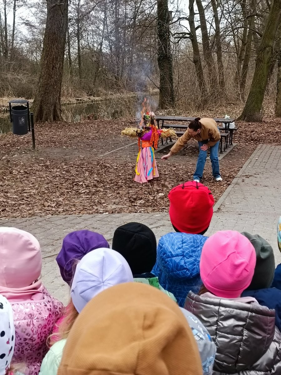 W dniu 20 marca 2026 roku mieliśmy zaszczyt witać Panią Wiosnę, która w tym roku przybyła do nas wraz z Panem Bocianem. Marzanna - zimowa panna, została symbolicznie spalona nad rzeką.