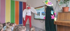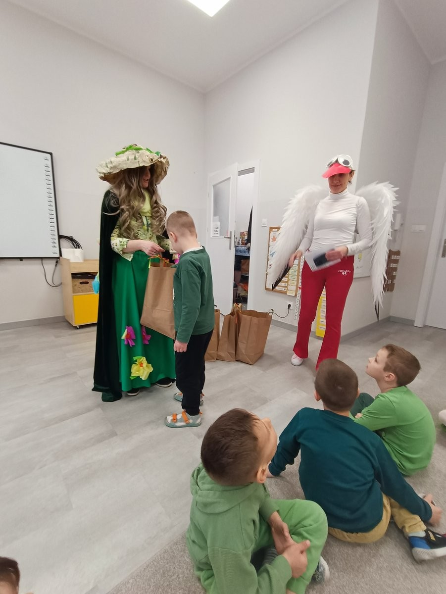 Po powrocie do przedszkola, wszyscy byliśmy weseli i radośni, a Pani Wiosna wraz ze swoim przyjacielem zaprosiła nas na interesującą prezentację na temat jerzyka, ptaka chronionego w Polsce.