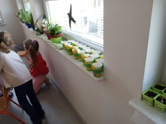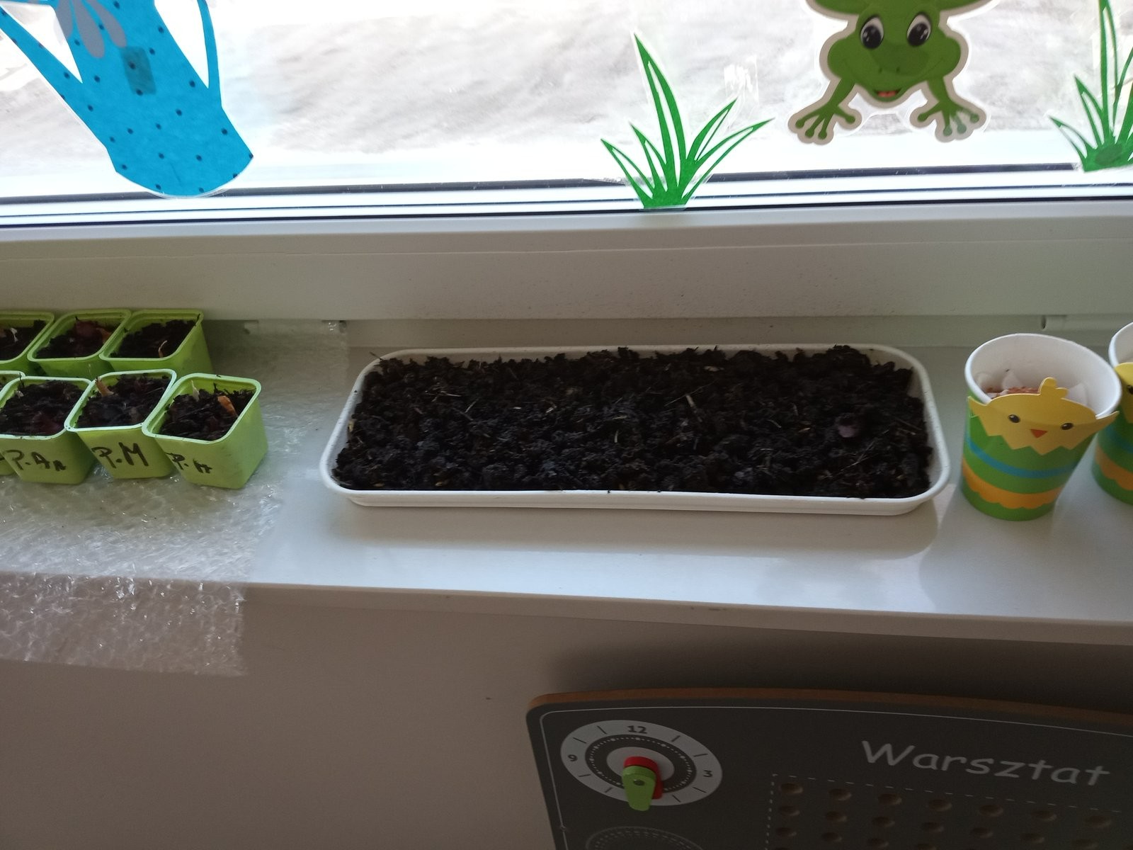 Dzieci, każdego dnia systematycznie sprawdzają i obserwują swoje rośliny, nie zapominając o ich podlaniu oraz odpowiednim ustawieniu w kierunku słońca.