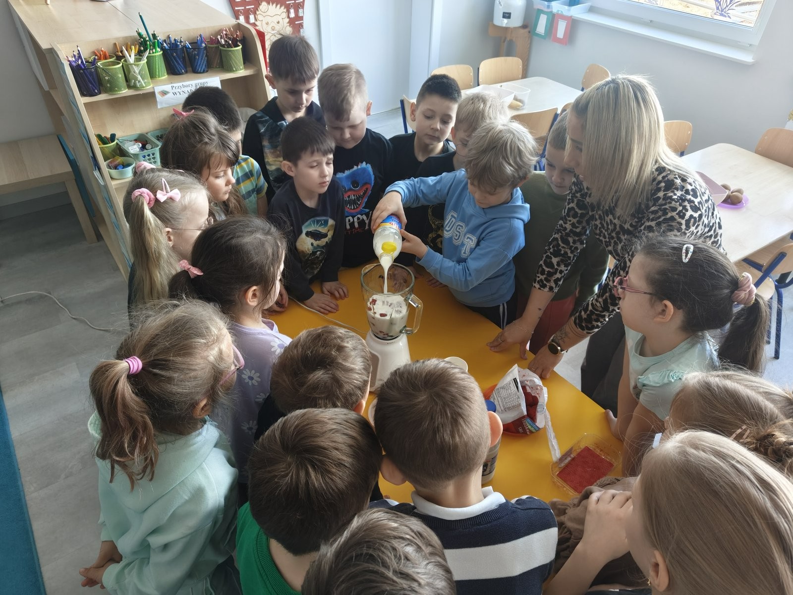 Podczas tego tygodnia dzieci miały również okazję zapoznać się z piramidą żywieniową oraz jej poszczególnymi poziomami. Przez interaktywne zabawy i zajęcia edukacyjne, mali odkrywcy poznawali, jakie produkty powinny znajdować się w codziennej diecie, jak również nauczyli się, dlaczego warto dbać o zdrowie poprzez odpowiednie odżywianie.