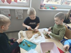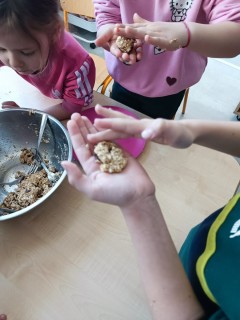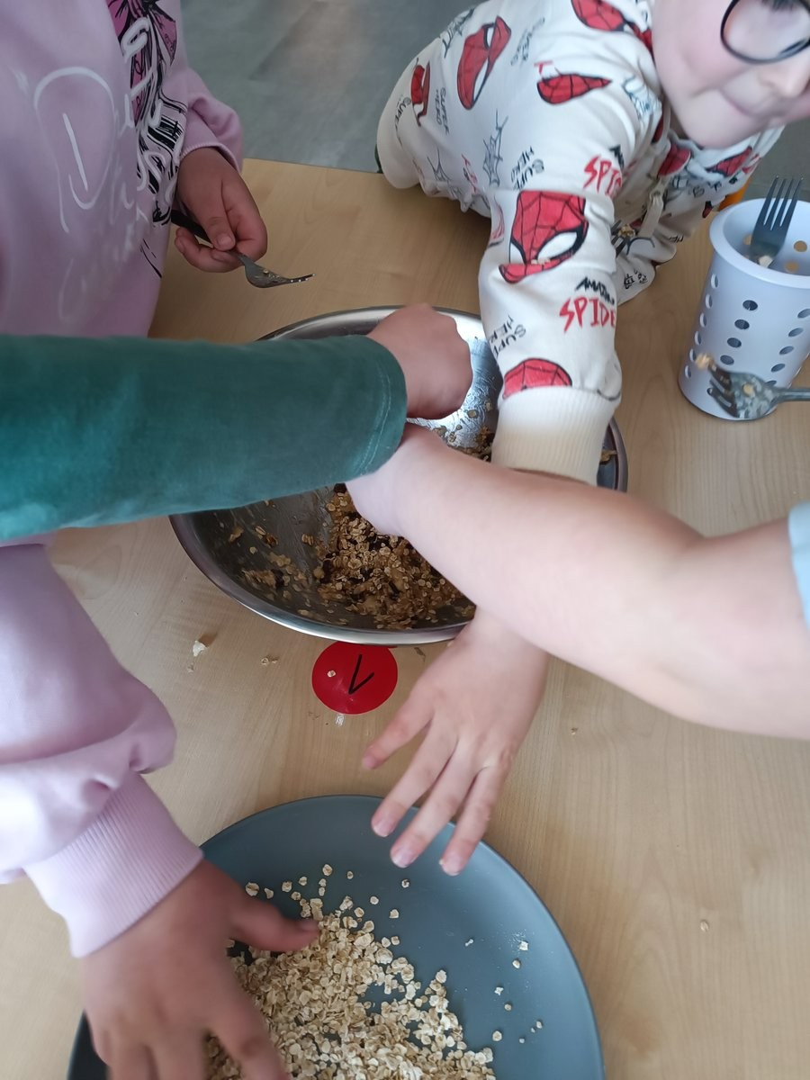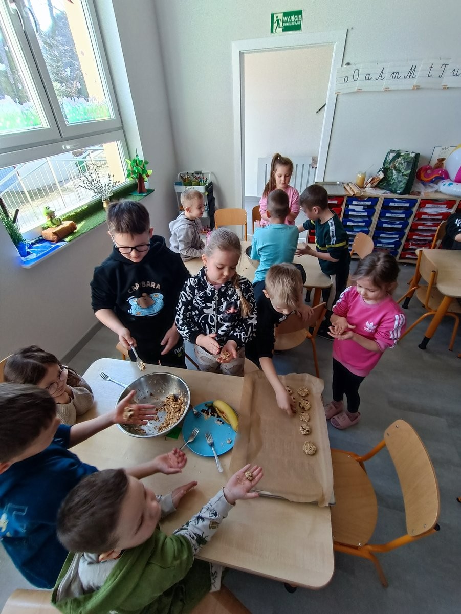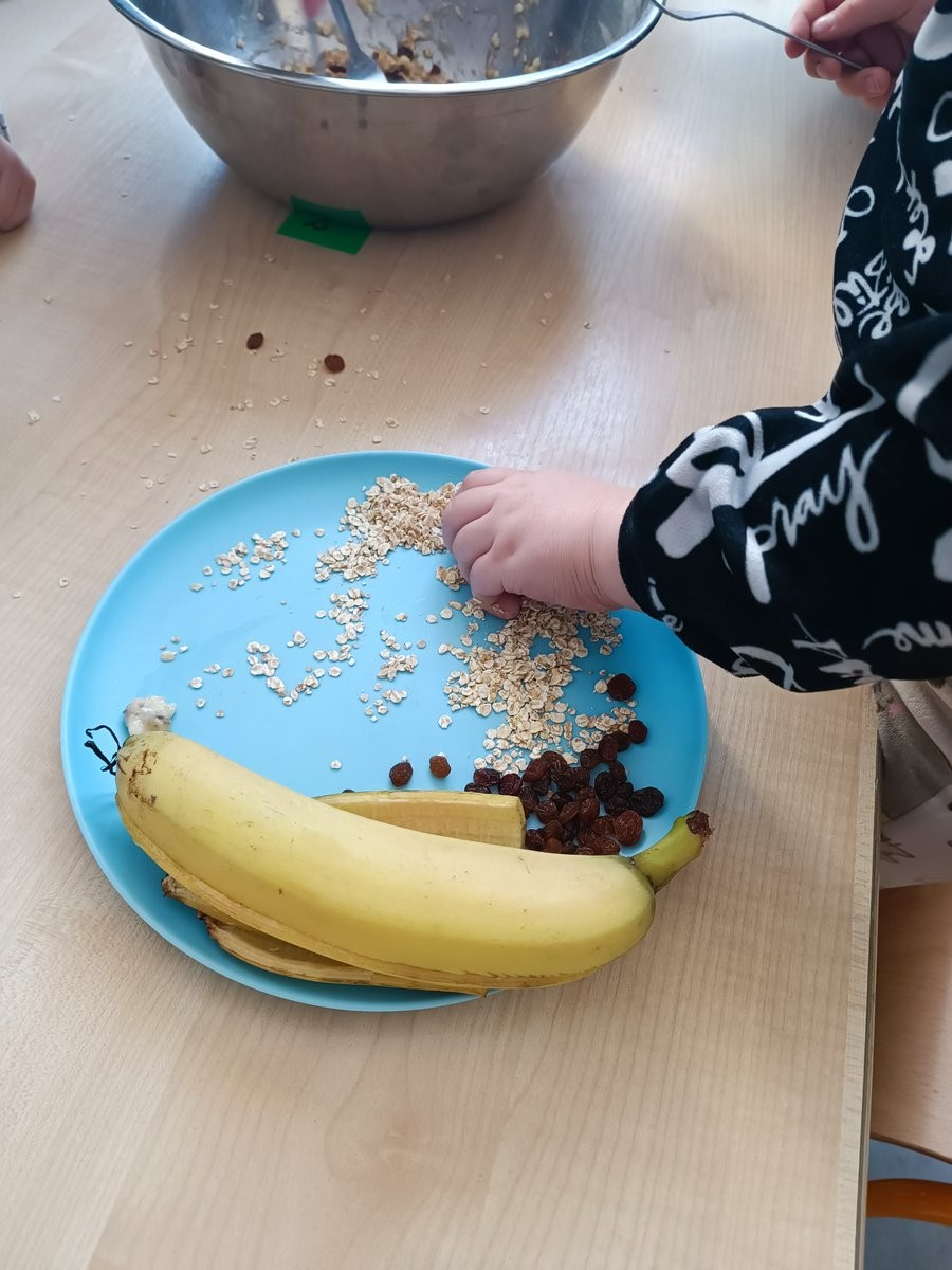 4. pieczenie zdrowych ciastek przez grupę Tropicieli, na podstawie instrukcji czynnościowej, rozwijało umiejętności kulinarne i pokazywało , jak można w zdrowy sposób przygotować słodkości.