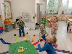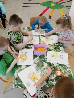 "Wielkanoc tuż, tuż" i aktywności wiosenne oparte na celach operacyjnych rozwijających poczucie rytmu, umiejętności uważnego słuchania, usprawniania motoryki małej i dużej, rozwijania prawidłowego wydech i szybkości spostrzegania.