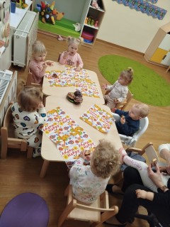 W dniu 27.02.2025r. w żłobku świętowaliśmy Tłusty Czwartek. Dzieci w przystępny dla siebie sposób zapoznawały się z tradycjami tego dnia i zajadały się pysznymi pączkami.