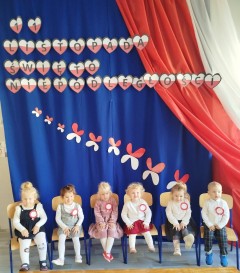 Uwieńczone białymi i czerwonymi kotylionami dzieci pięknie pozowały do zdjęć. Jesteśmy dumni z naszych najmłodszych Polek i Polaków.