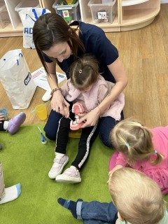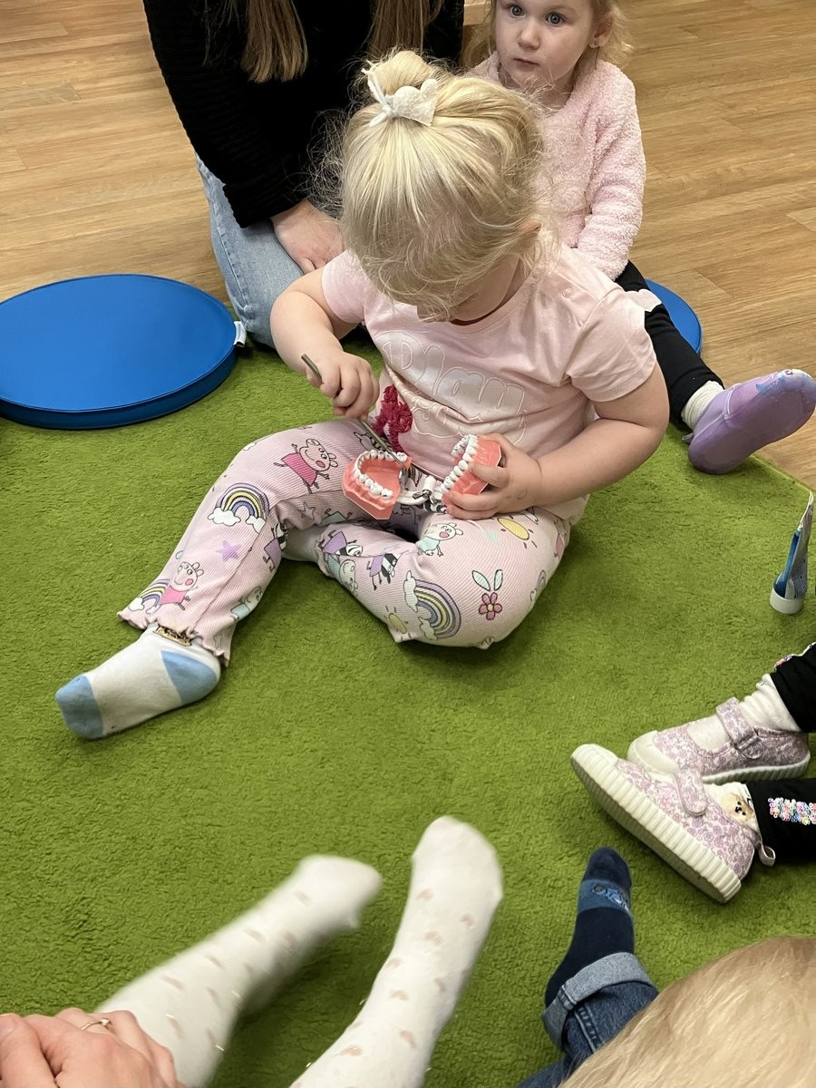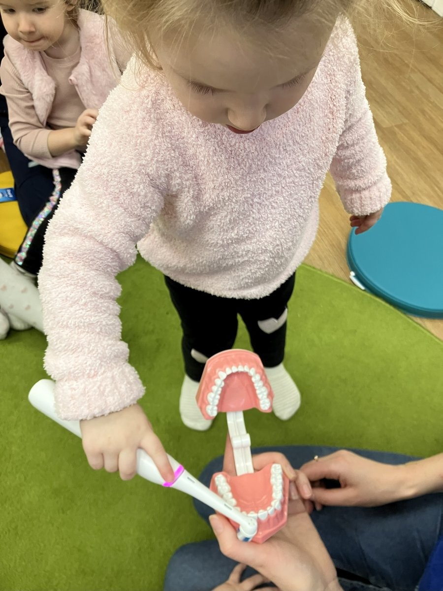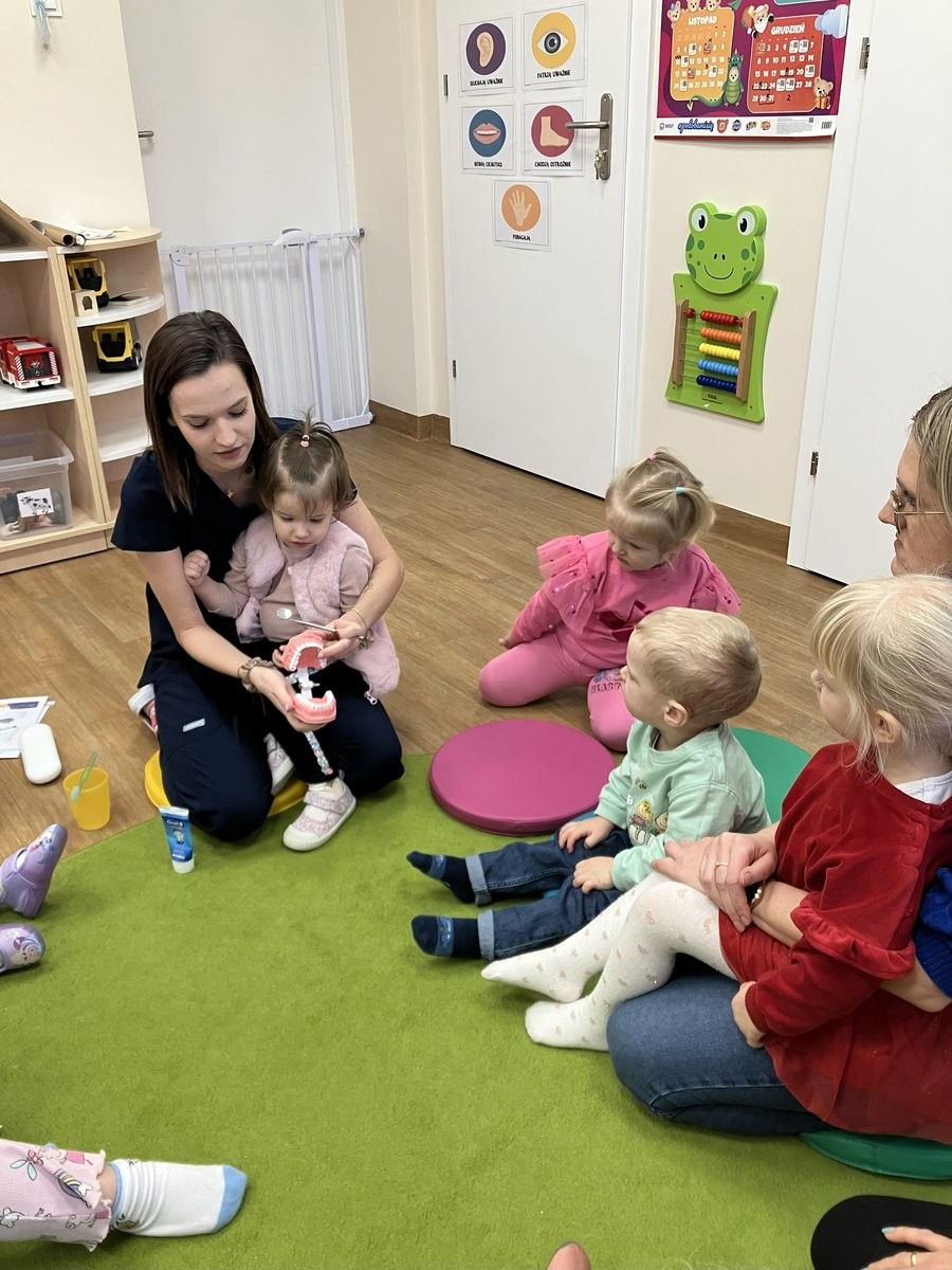 20 listopada 2025 r. gościliśmy w naszym Żłobku specjalistę od higieny jamy ustnej. Pani higienistka udzieliła nam wskazówek, jak zadbać o zęby. Mamy już szczoteczki, pasty i rozpoczynamy przygodę o "Zdrowy uśmiech".