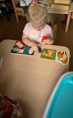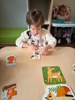 W ramach zajęć nasze dzieci wykonały zadanie polegające na ułożeniu układanki, aby odkryć, jakie zwierzęta zamieszkują las. Uczestnicy wykazali się dużą ciekawością i zaangażowaniem, próbując dowiedzieć się, kto kryje się wśród leśnych gąszczy.