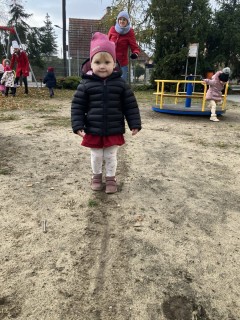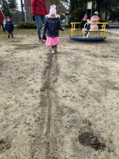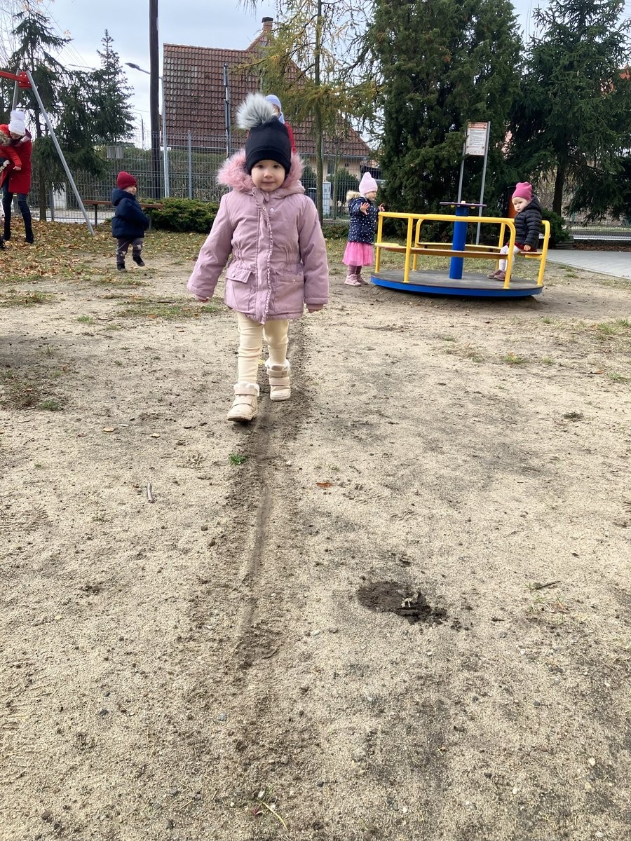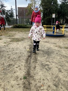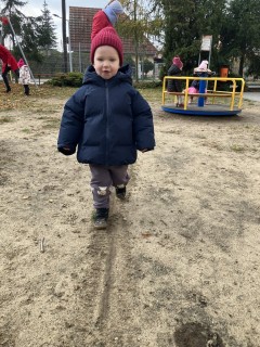 Dzieci potrafią również maszerować wzdłuż linii; ćwiczą w ten sposób koordynację wzrokowo-ruchową.