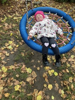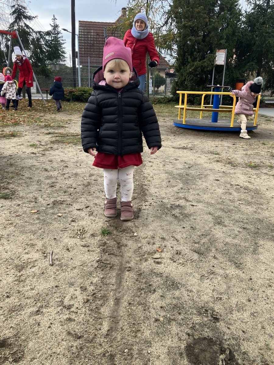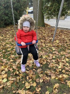 Zabawa na placu zabaw i korzystanie ze sprzętu sportowo-rekreacyjnego to ulubione aktywności naszych Słoneczek. Bujanie na huśtawce i bocianim gnieździe to sama przyjemność.