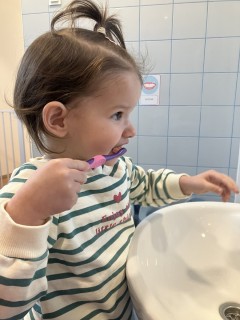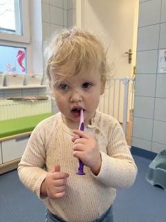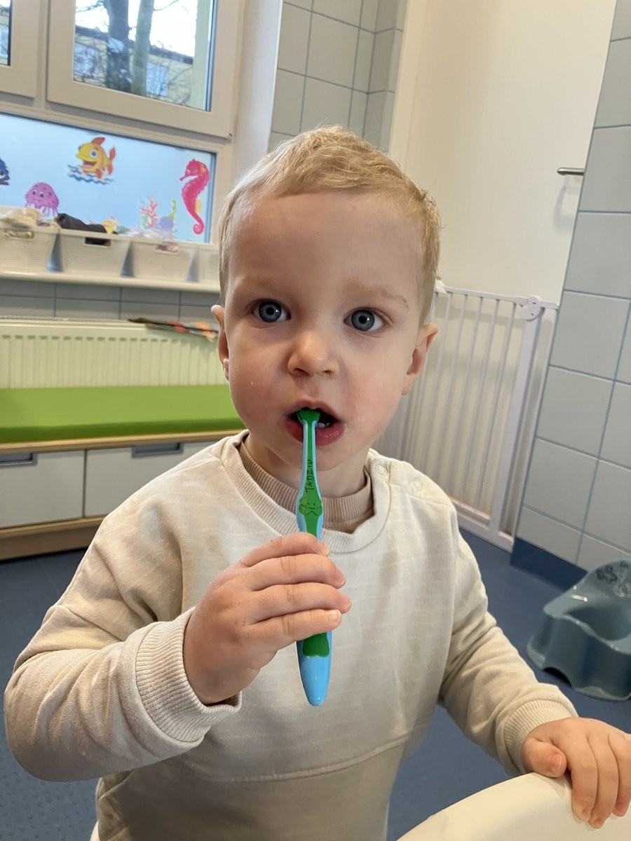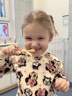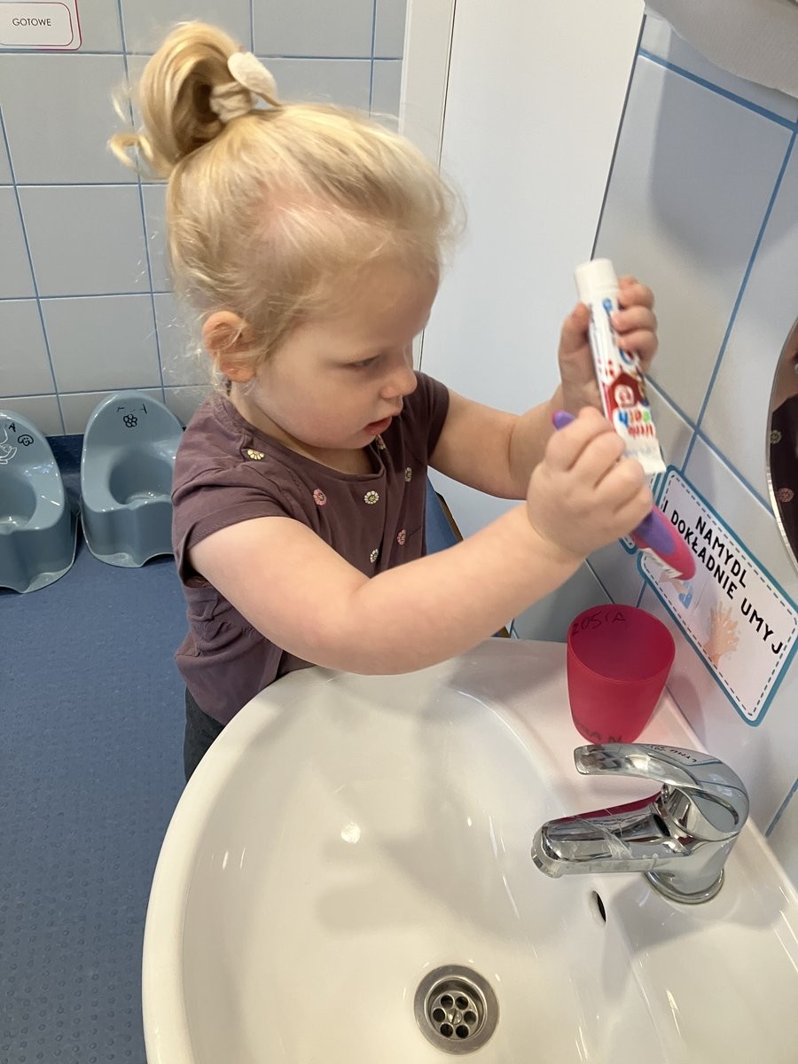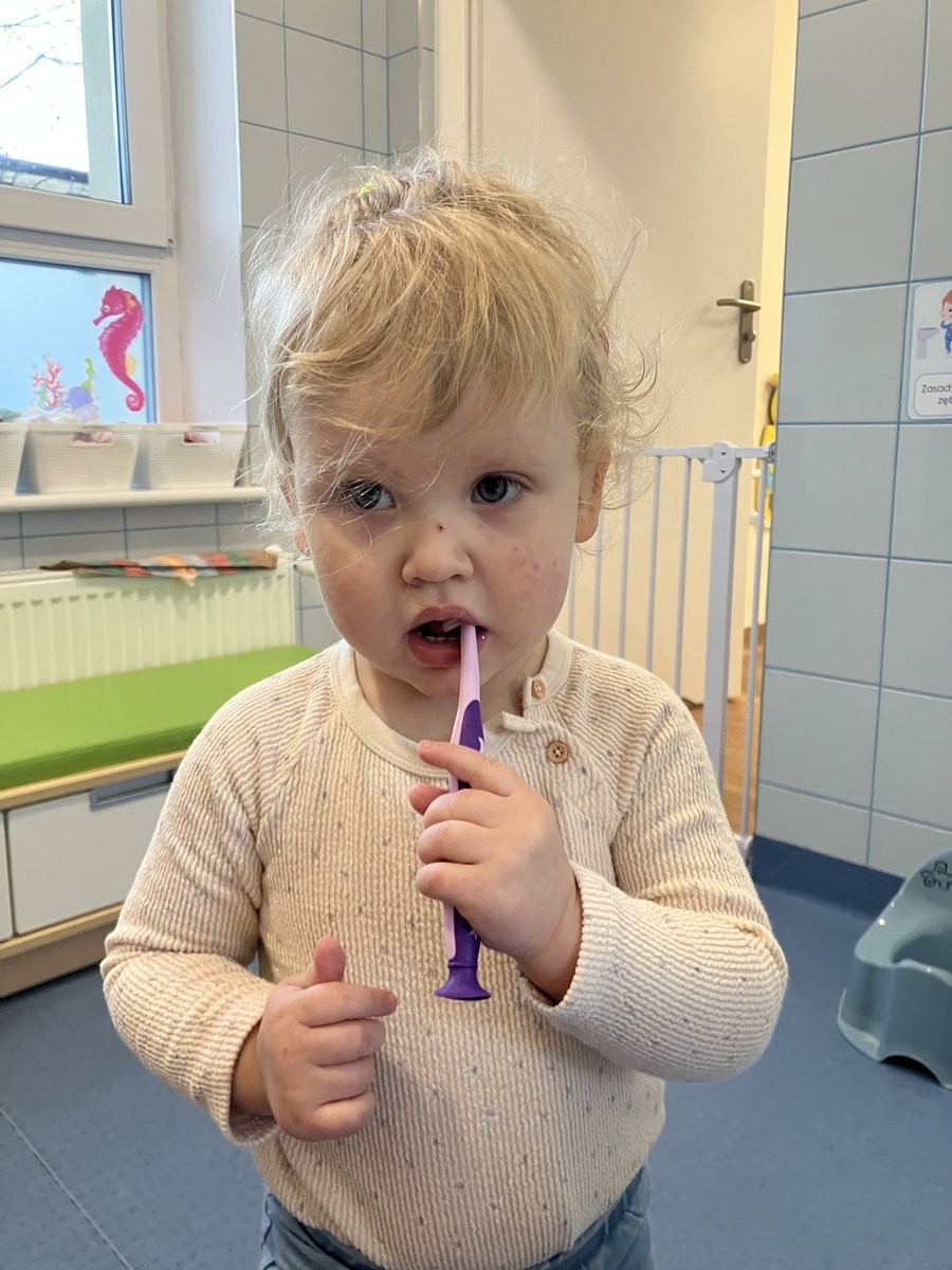 W ramach programu „Zdrowy uśmiech”, w naszym żłobku realizowane są zajęcia praktyczne związane z higieną zębów.