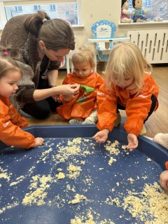Dostarczamy naszym dzieciom żłobkowym oraz ich rodzicom narzędzi i inspiracji, które zachęcają do wielozmysłowego poznawania i odkrywania świata oraz wpływania na harmonijną pracę układu nerwowego dzieci poprzez odpowiednią stymulację zmysłów, które sprzyjają rozwojowi mowy.