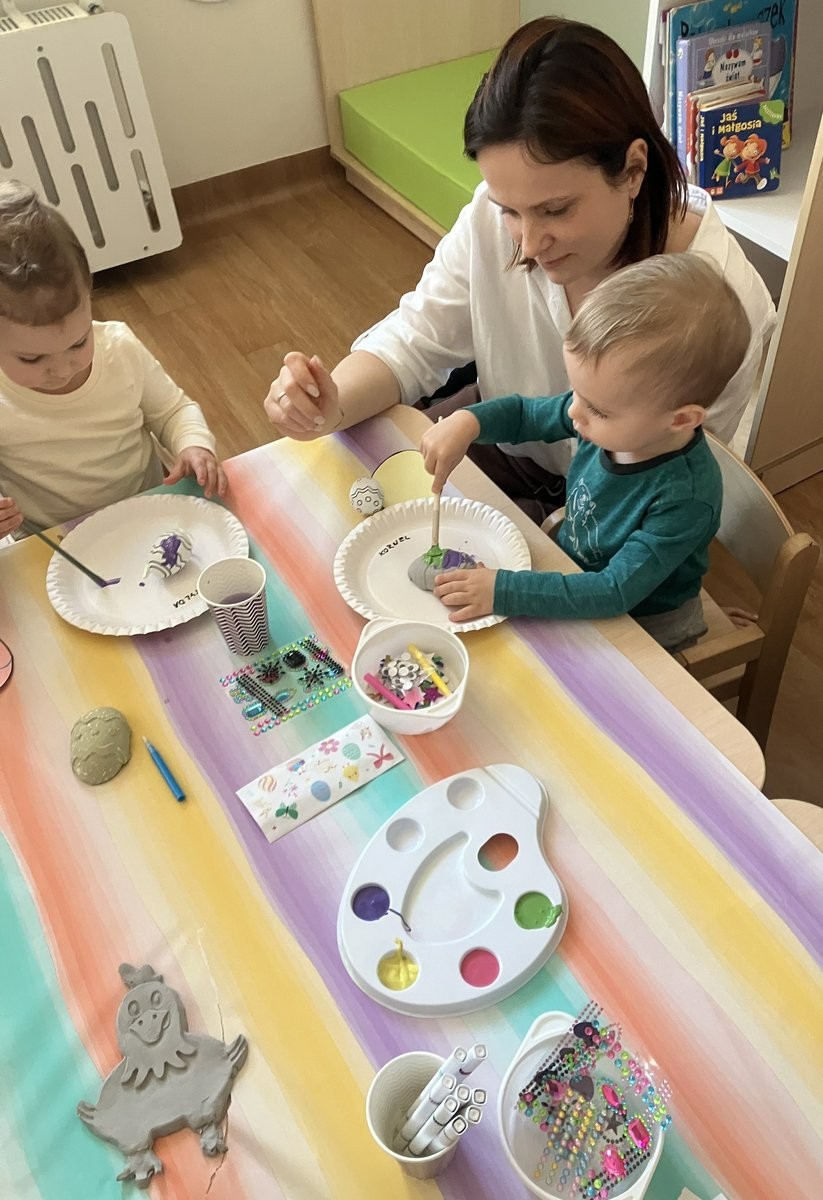 - ozdabianie pisanek – wspólne stworzenie kolorowych i oryginalnych pisanek, które będą piękną ozdobą wielkanocnego stołu;