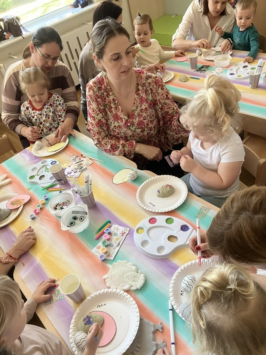 Warsztaty wielkanocne były czasem integracji rodziców i dzieci, a także okazją do budowania atmosfery i klimatu nadchodzących świąt.