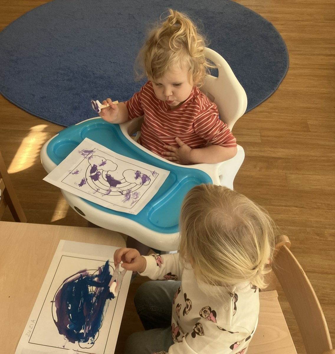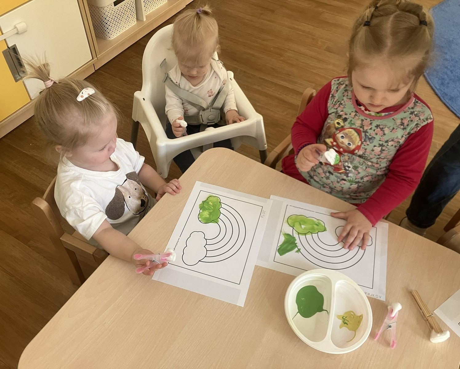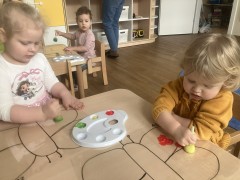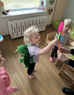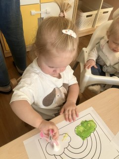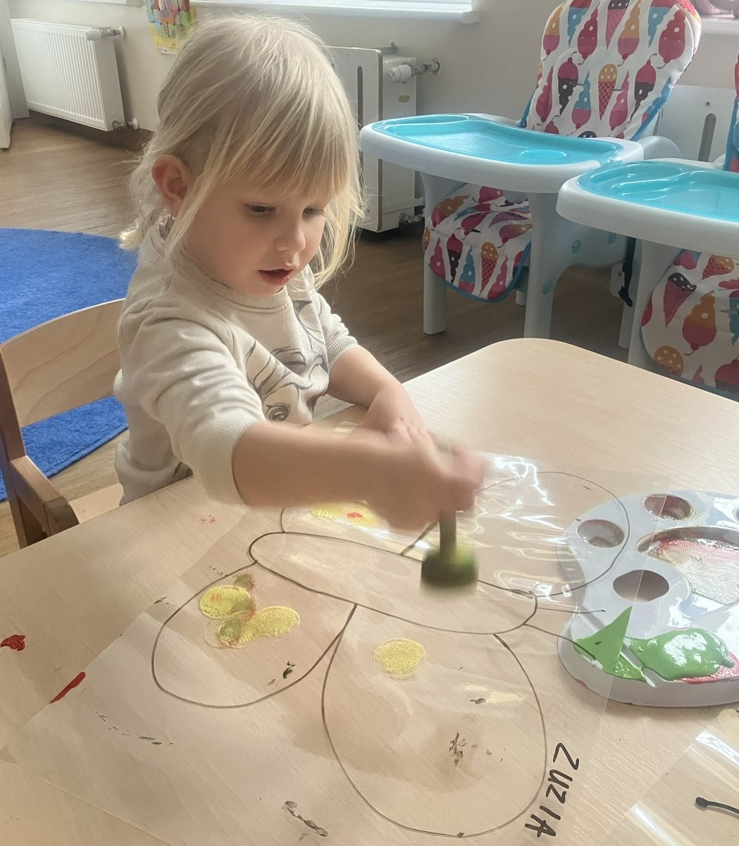 Zabawy z kolorami oraz odkrywanie barw za pomocą różnorodnych zmysłów były inspirującymi aktywnościami dla dzieci w naszym żłobku. Dzieci tworzyły tęczę, wykorzystując klamerki i waciki kosmetyczne. Obserwacje przyrody oraz wiosenna aura stały się doskonałą inspiracją do jeszcze jednego twórczego przedsięwzięcia – tworzenia kolorowych motyli.