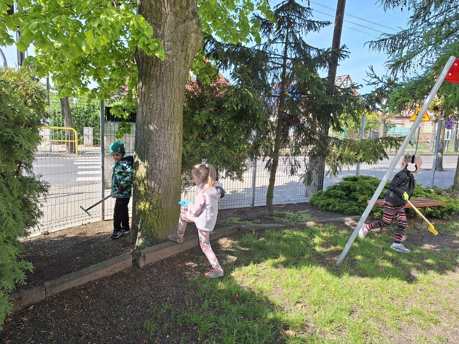 - Motylki zadbały o porządek w ogrodzie oraz na terenie placu zabaw.