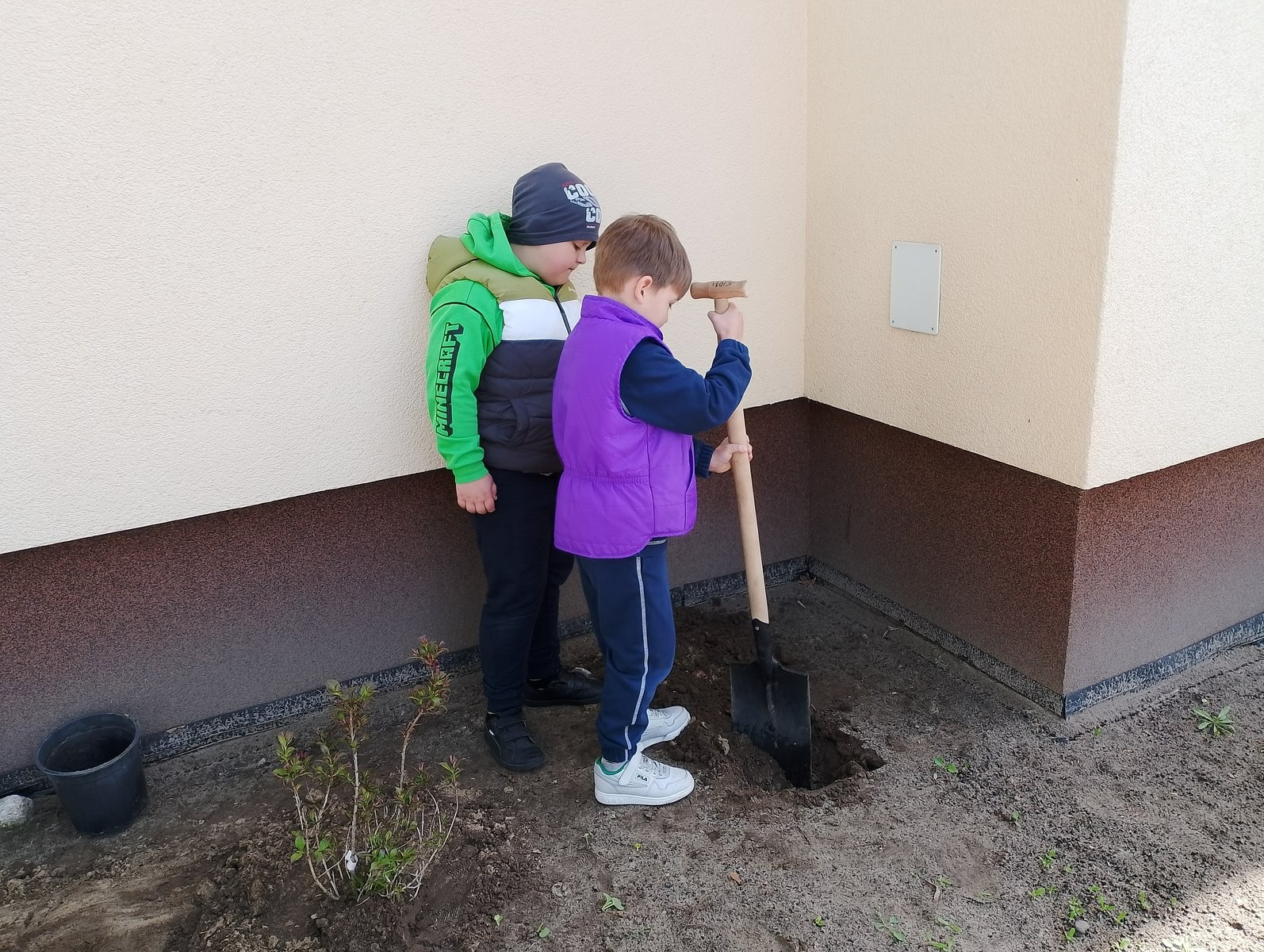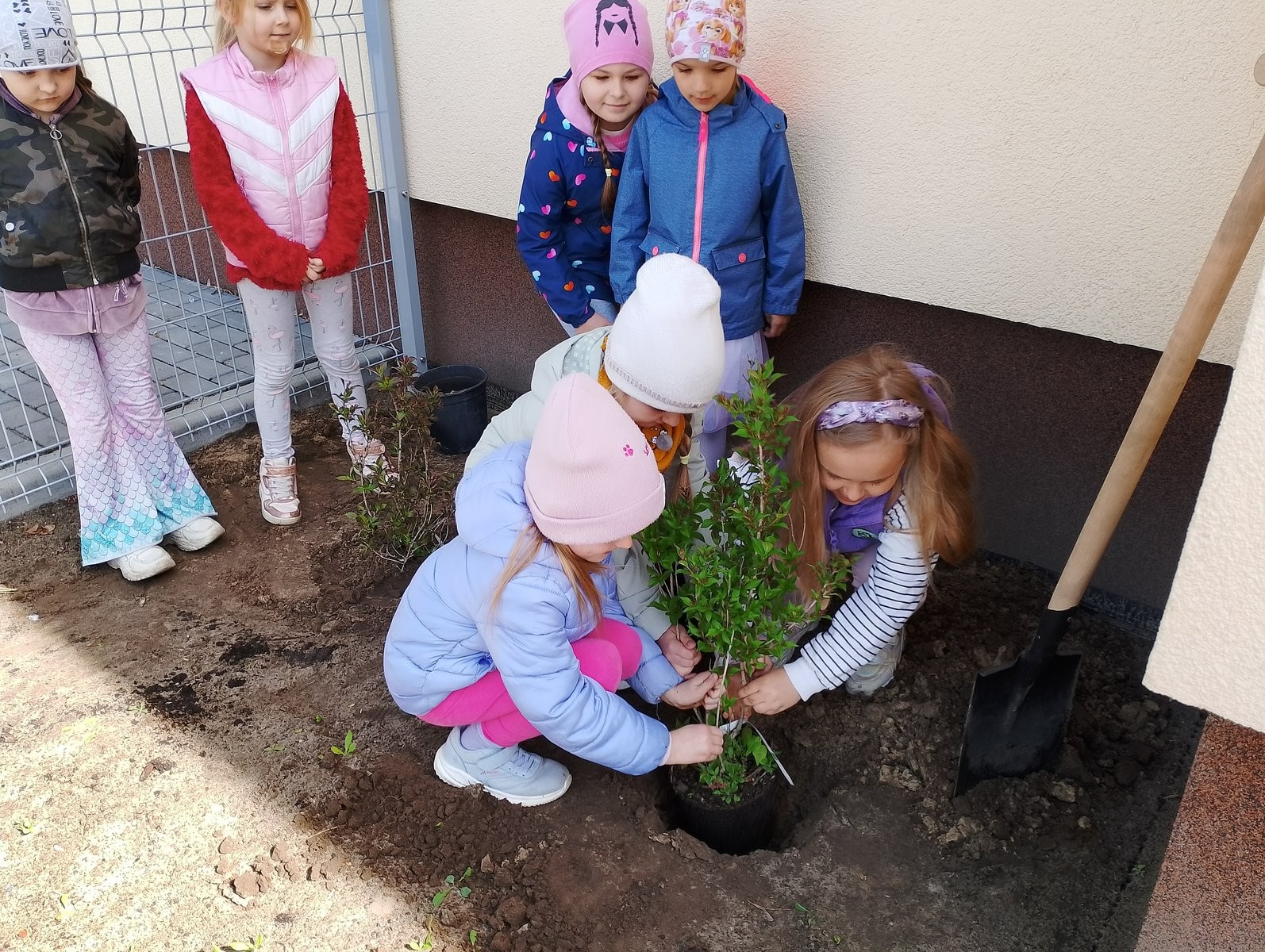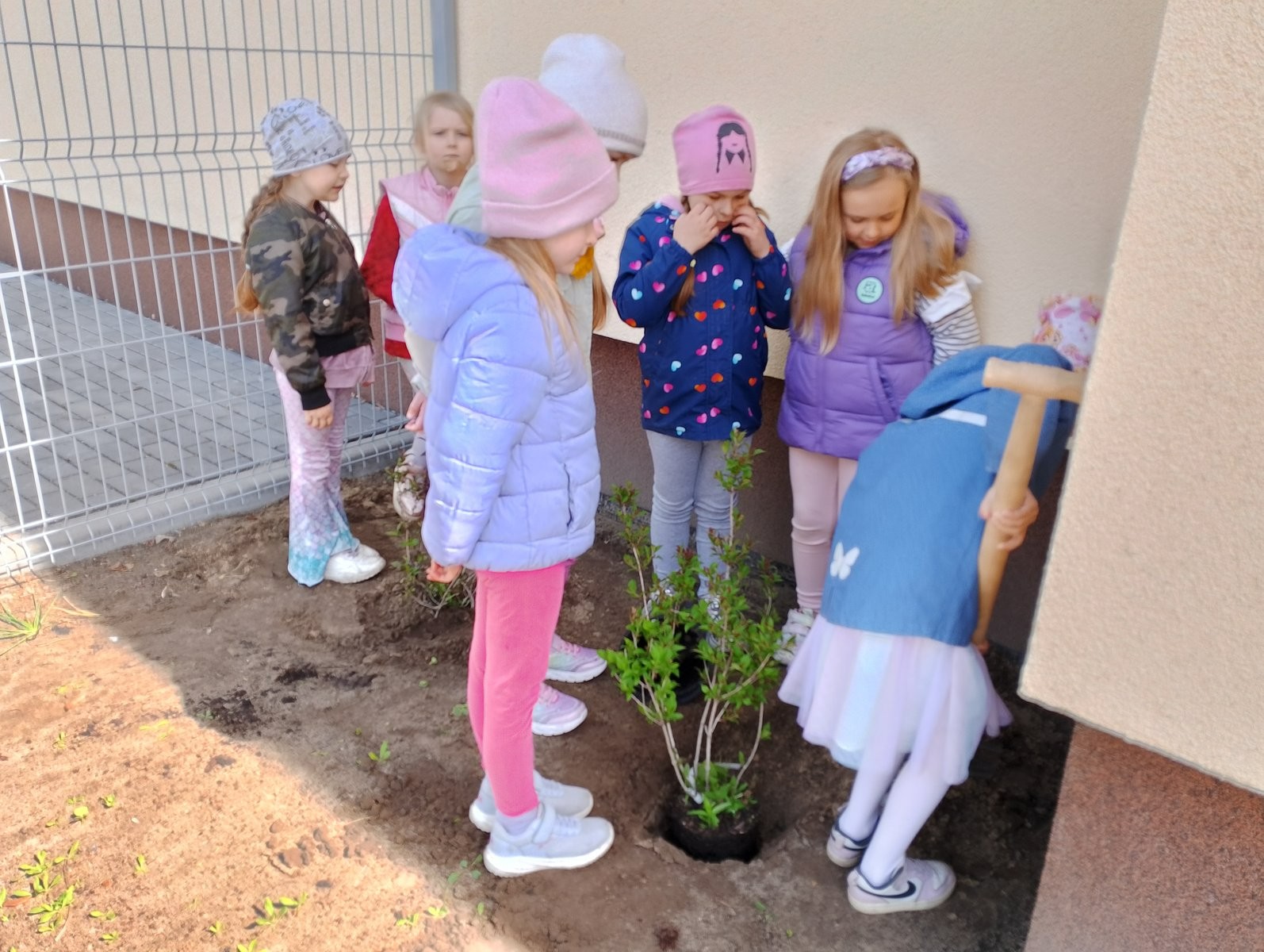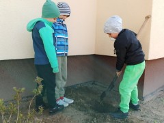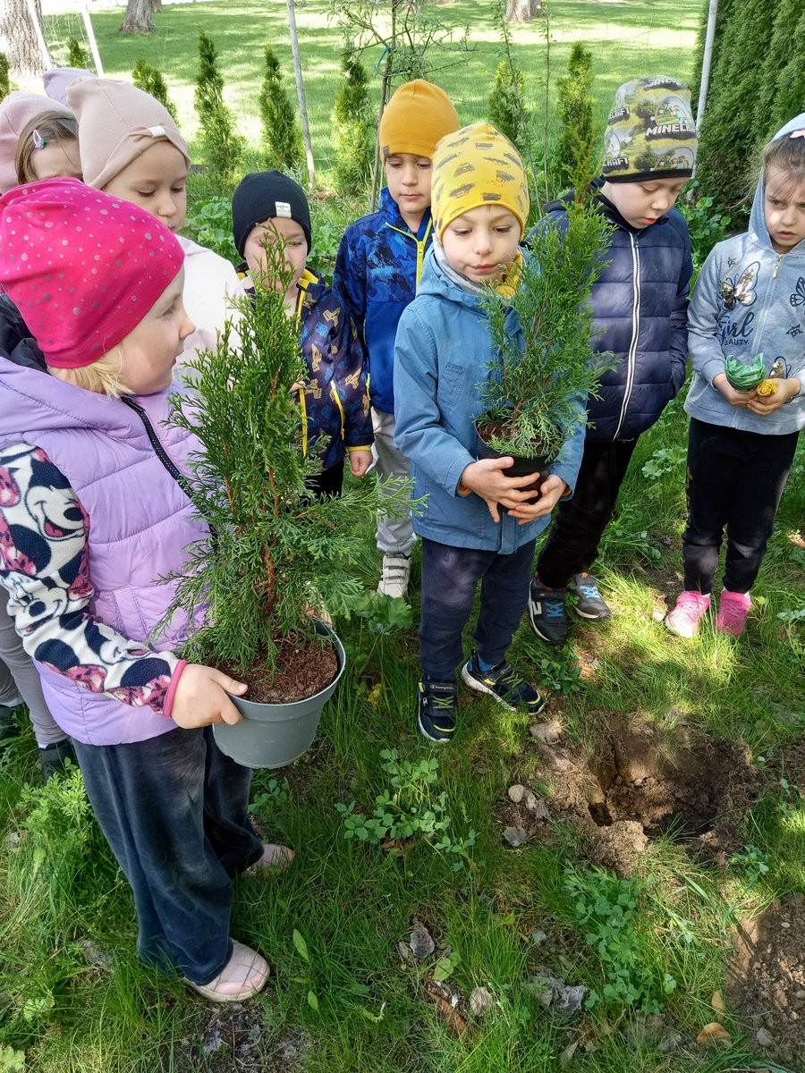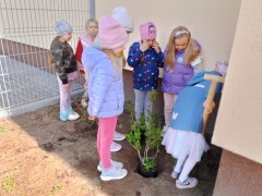 - Kotki posadziły dwa iglaki - tuje, które zostały umieszczone za budynkiem przedszkola.