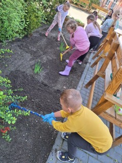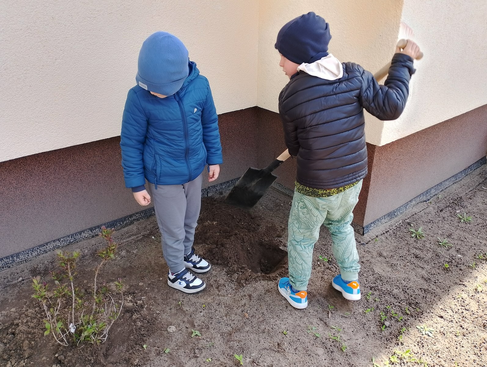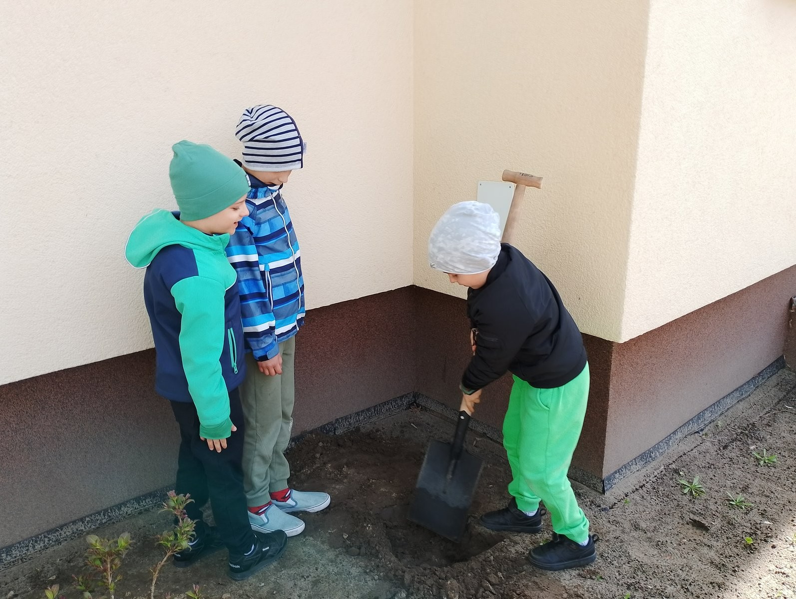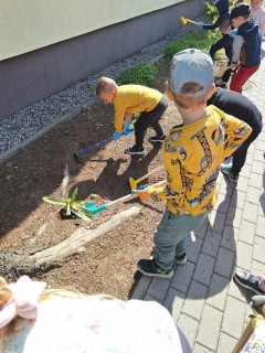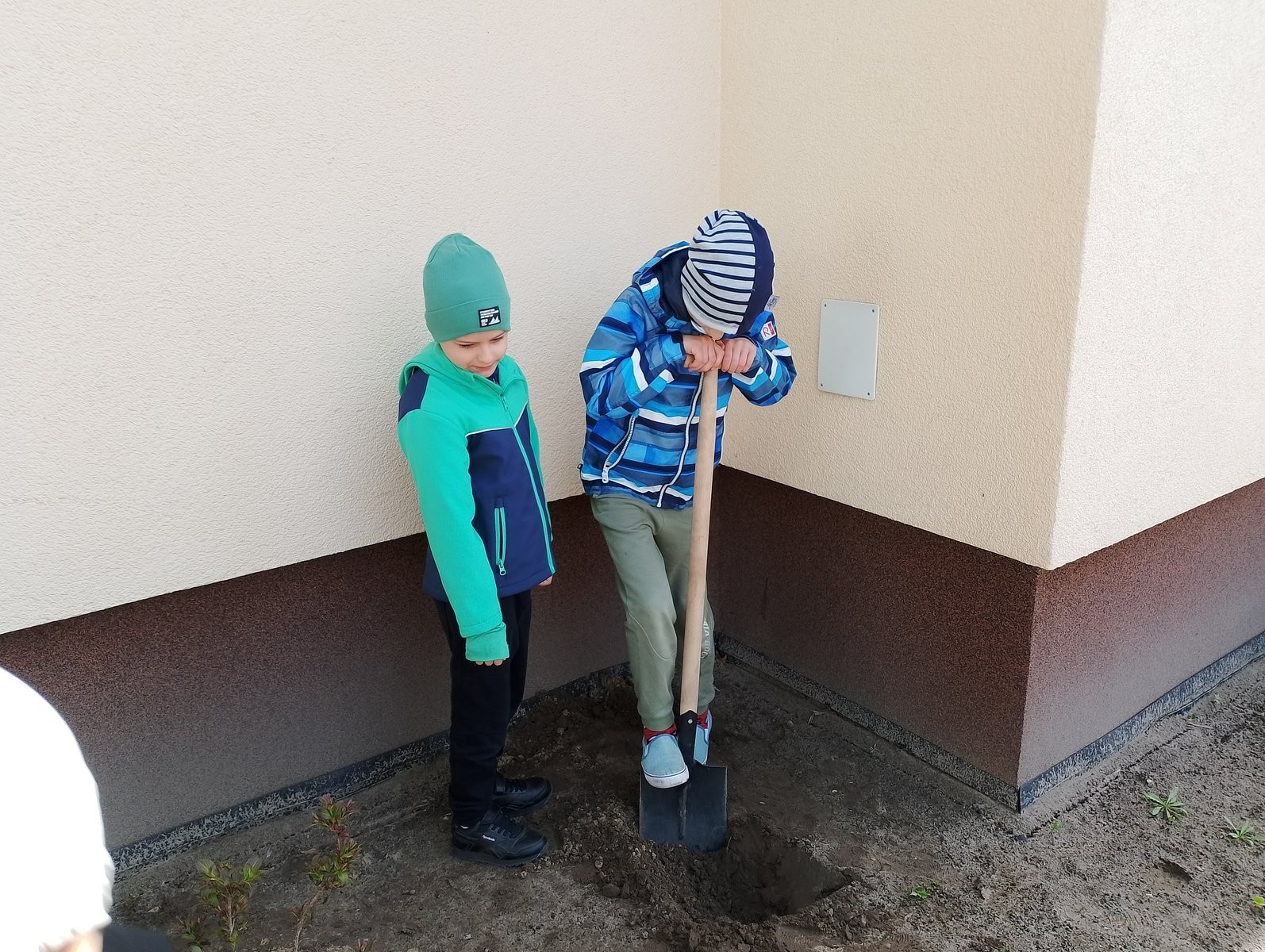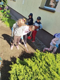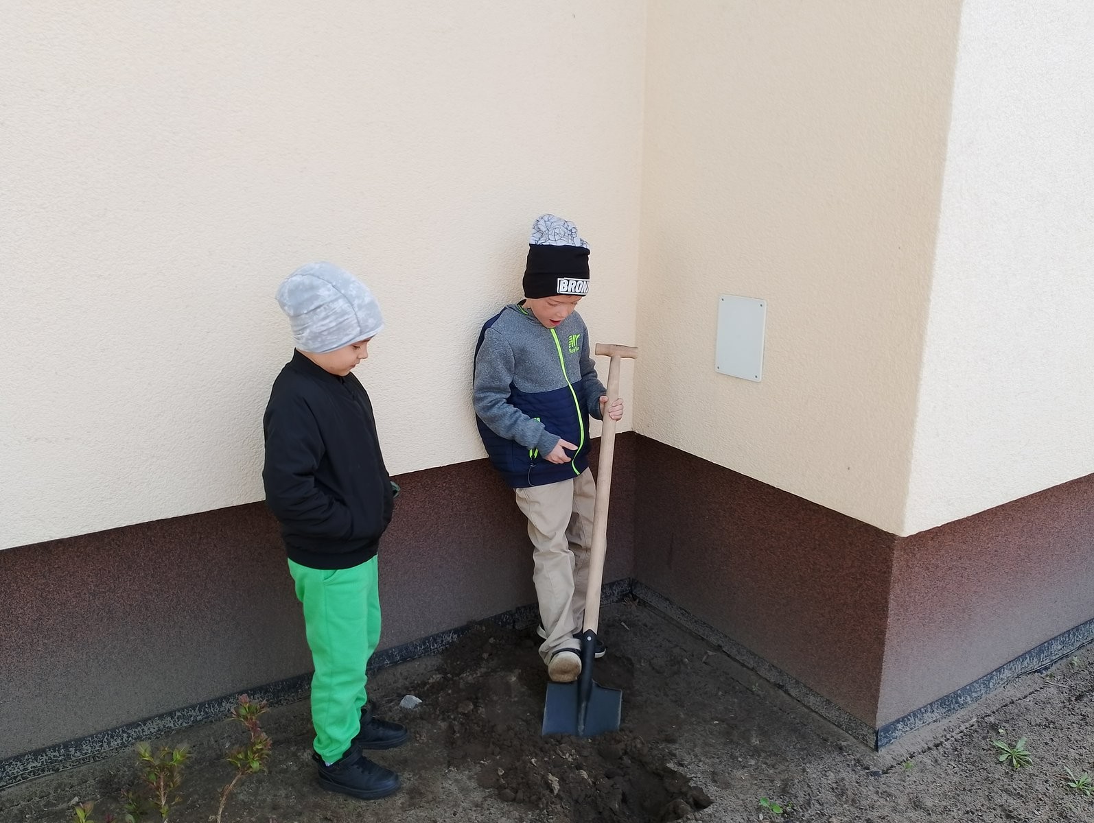 - Kotki posadziły dwa iglaki - tuje, które zostały umieszczone za budynkiem przedszkola.