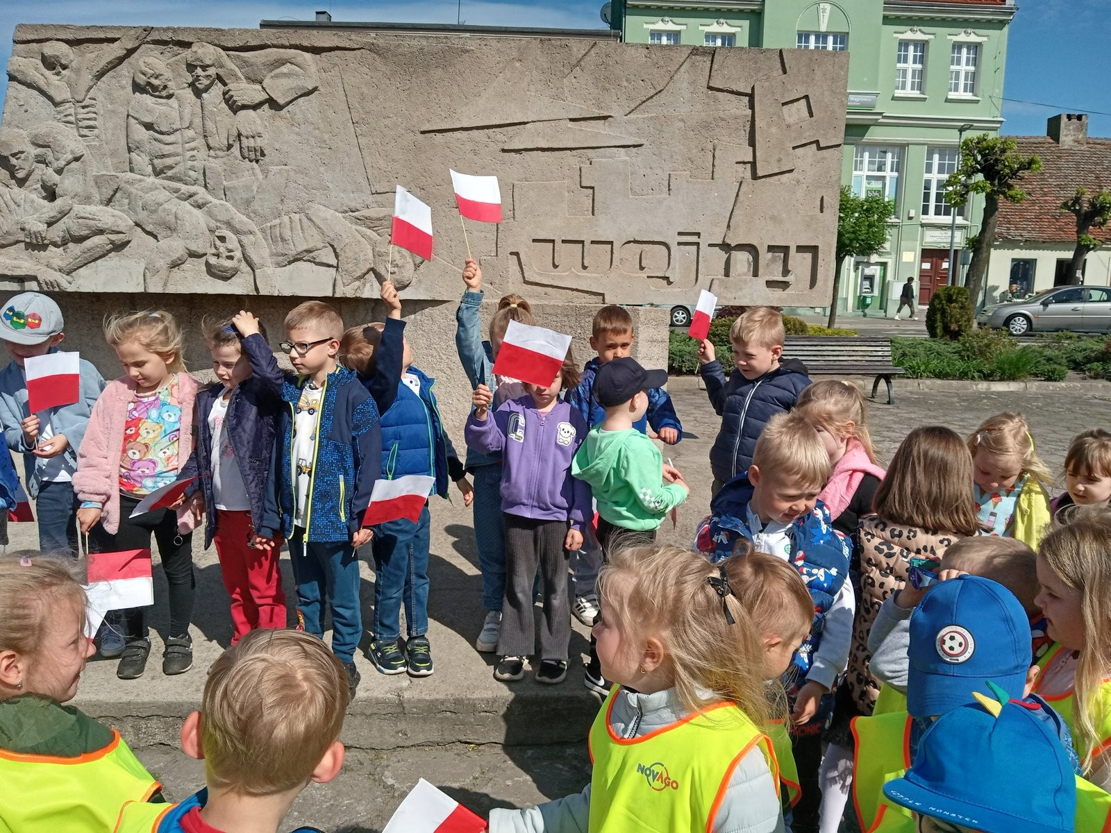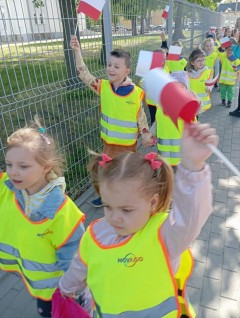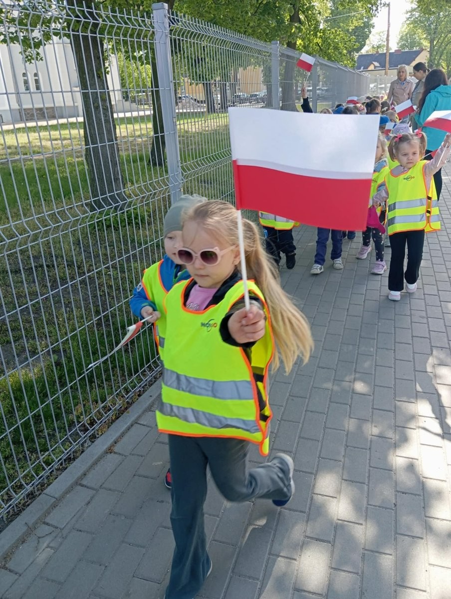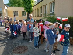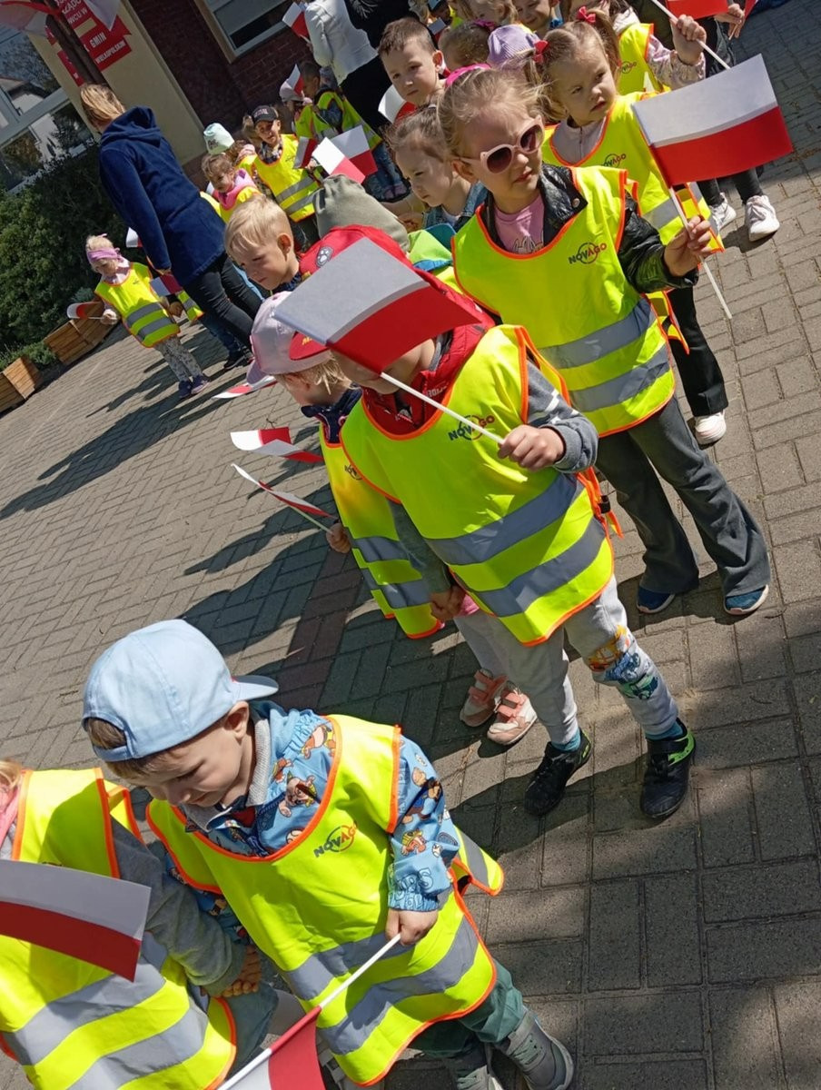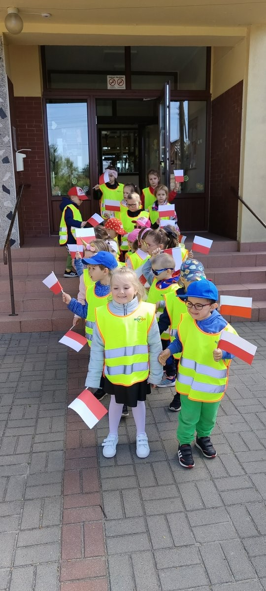 Z okazji Dnia Flagi nasze przedszkolaki maszerowały wokół Rynku w Janowcu Wielkopolskim. Dzieci na przestrzeni tygodnia poznały symbole narodowe i samodzielnie wykonały biało - czerwone flagi.
