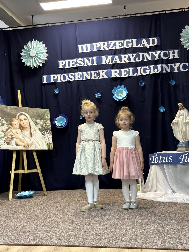 W dniu 16 maja 2025 roku, Pola i Lenka z naszego przedszkola wzięły udział w III Przeglądzie Pieśni Maryjnych i Piosenek Religijnych, który odbył się w Żninie i został zorganizowany przez Stowarzyszenie Przyjaciół Szkół Katolickich.