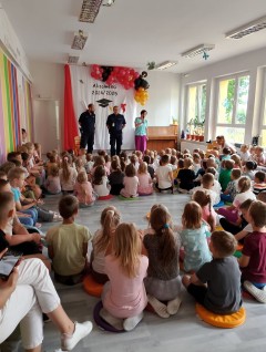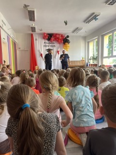 25 czerwca 2025 r. gościliśmy policjantów, którzy przynieśli ze sobą ważne informacje na temat bezpiecznych zachowań podczas wakacyjnych podróży. Podzielili się wskazówkami, jak unikać zagrożeń podczas odpoczynku. Dzieci były bardzo ciekawskie i z zainteresowaniem chłonęły wiedzę.