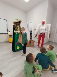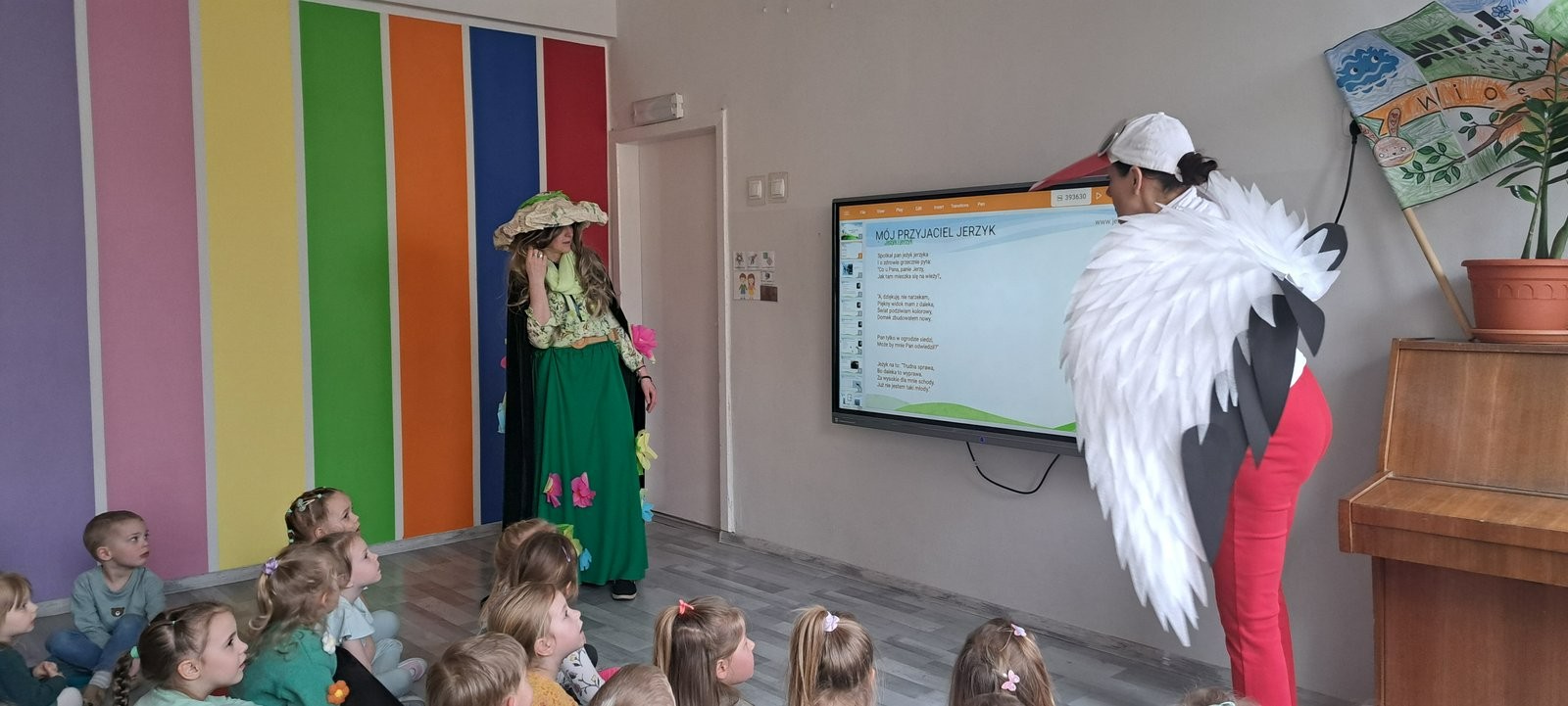 Po powrocie do przedszkola, wszyscy byliśmy weseli i radośni, a Pani Wiosna wraz ze swoim przyjacielem zaprosiła nas na interesującą prezentację na temat jerzyka, ptaka chronionego w Polsce.