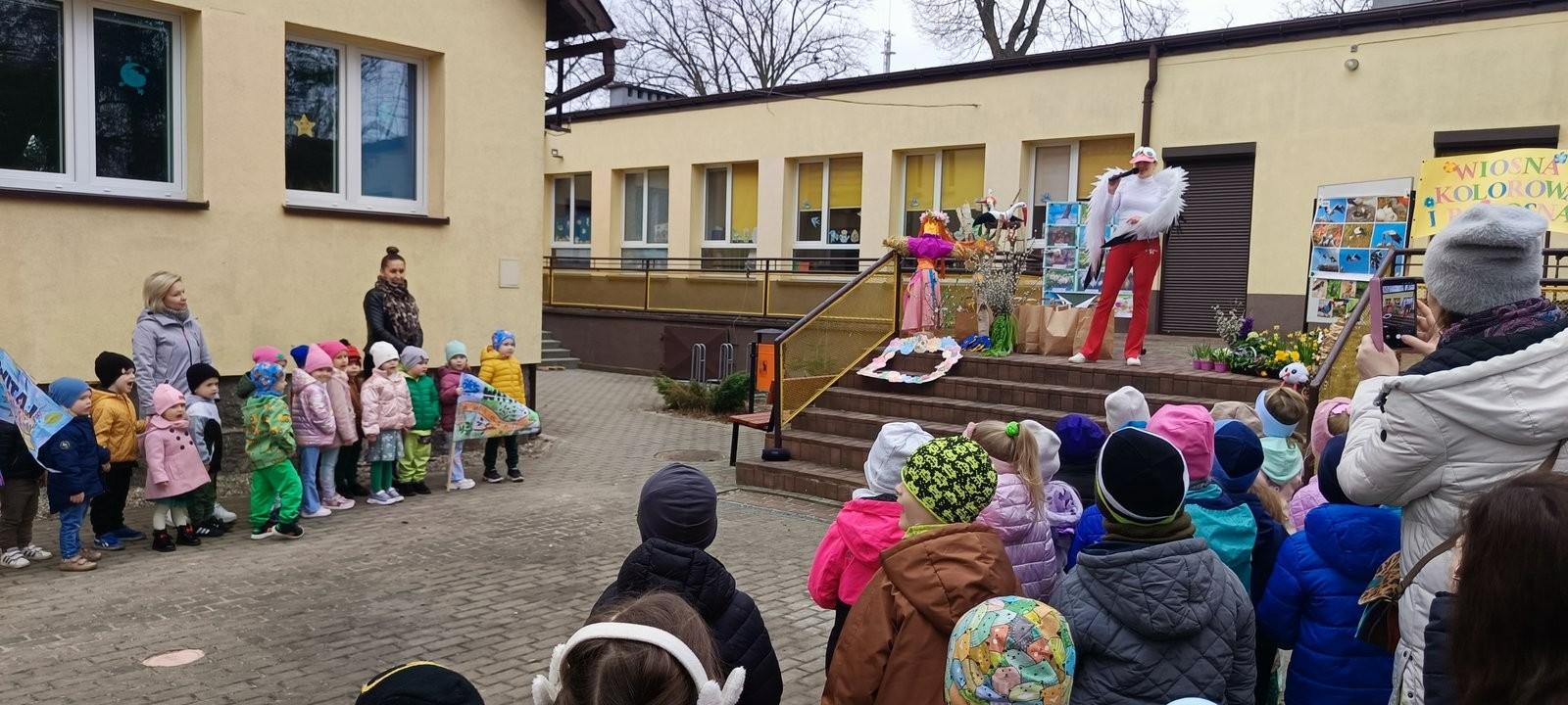 W dniu 20 marca 2026 roku mieliśmy zaszczyt witać Panią Wiosnę, która w tym roku przybyła do nas wraz z Panem Bocianem. Marzanna - zimowa panna, została symbolicznie spalona nad rzeką.