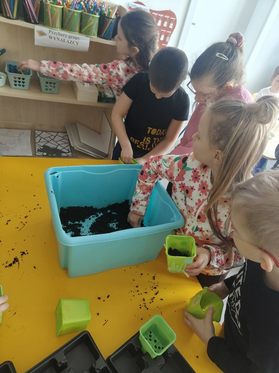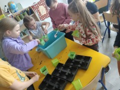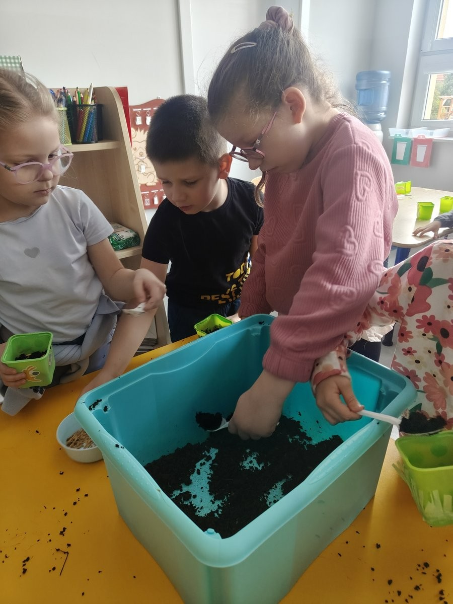 Dzieci, każdego dnia systematycznie sprawdzają i obserwują swoje rośliny, nie zapominając o ich podlaniu oraz odpowiednim ustawieniu w kierunku słońca.