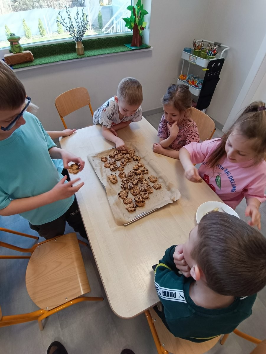4. pieczenie zdrowych ciastek przez grupę Tropicieli, na podstawie instrukcji czynnościowej, rozwijało umiejętności kulinarne i pokazywało , jak można w zdrowy sposób przygotować słodkości.