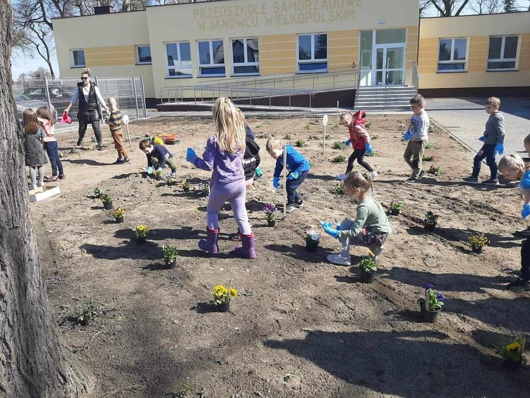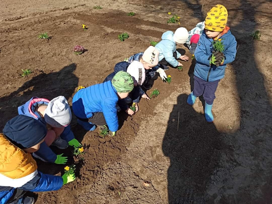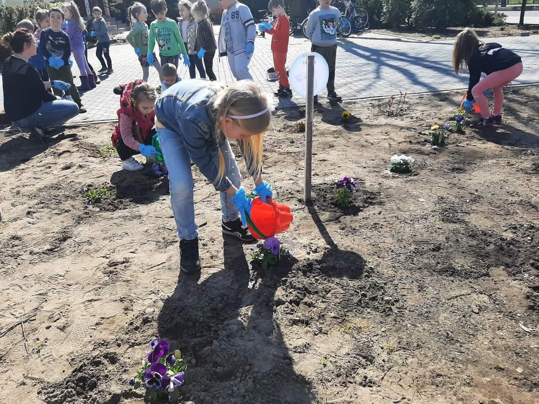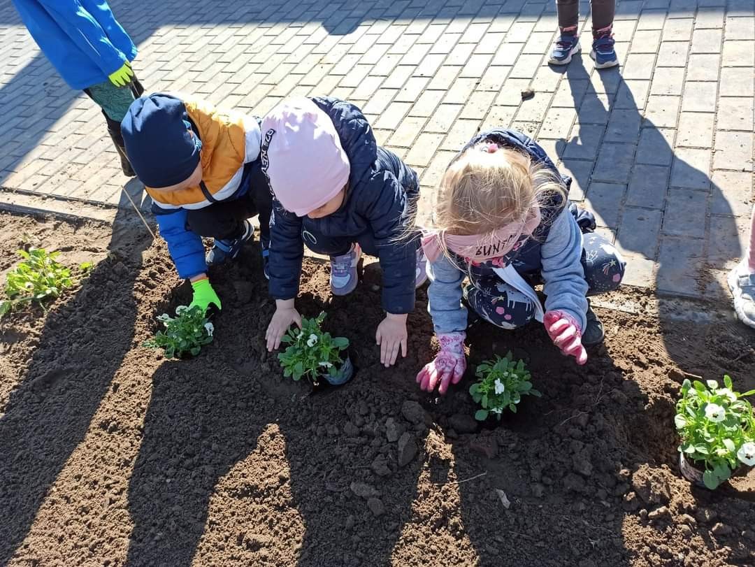 Dzisiaj obchodziliśmy Dzień Ziemi. Z tej okazji dzieci posadziły mnóstwo kwiatów w przedszkolnym ogrodzie oraz zajęły się porządkami i zbieraniem śmieci.