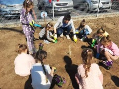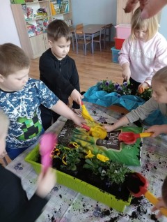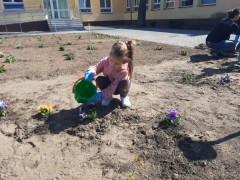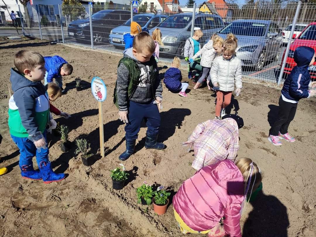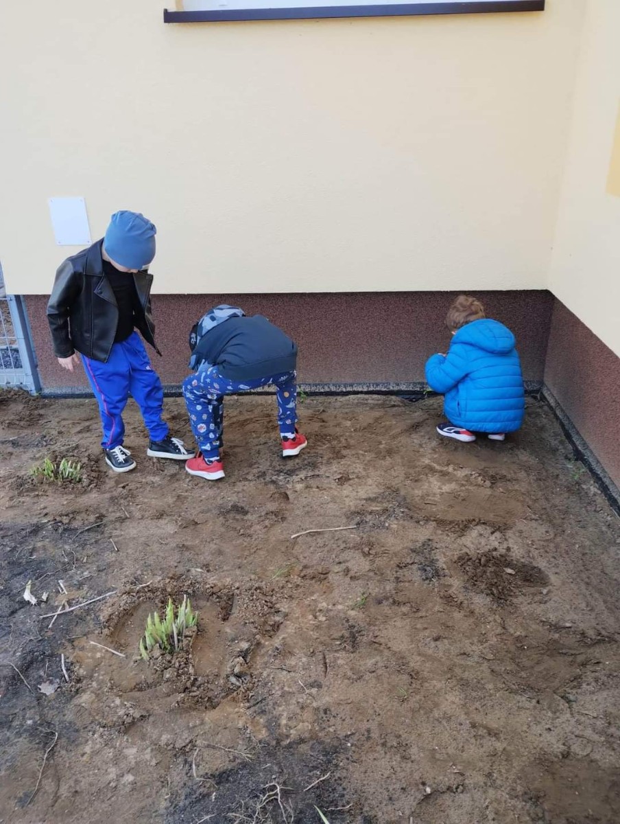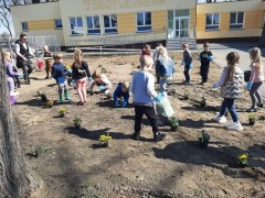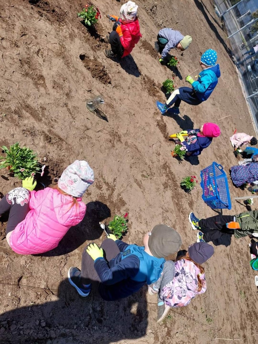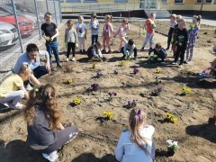 Dzisiaj obchodziliśmy Dzień Ziemi. Z tej okazji dzieci posadziły mnóstwo kwiatów w przedszkolnym ogrodzie oraz zajęły się porządkami i zbieraniem śmieci.