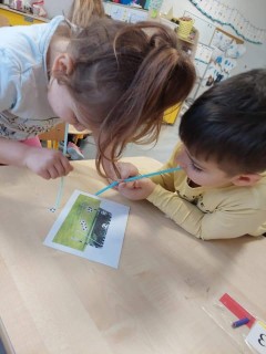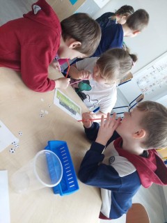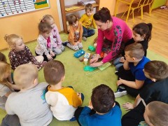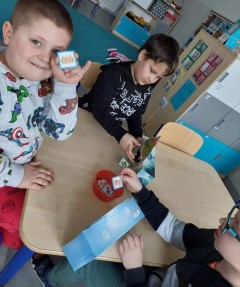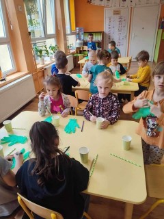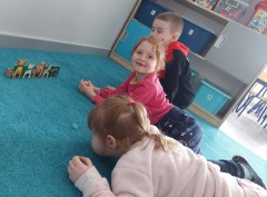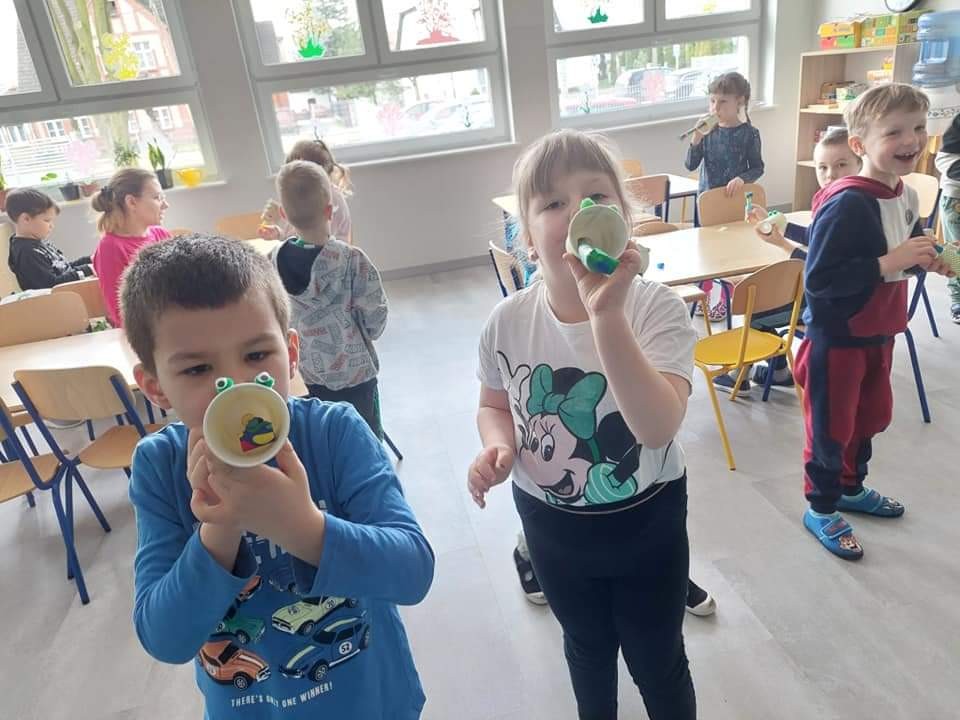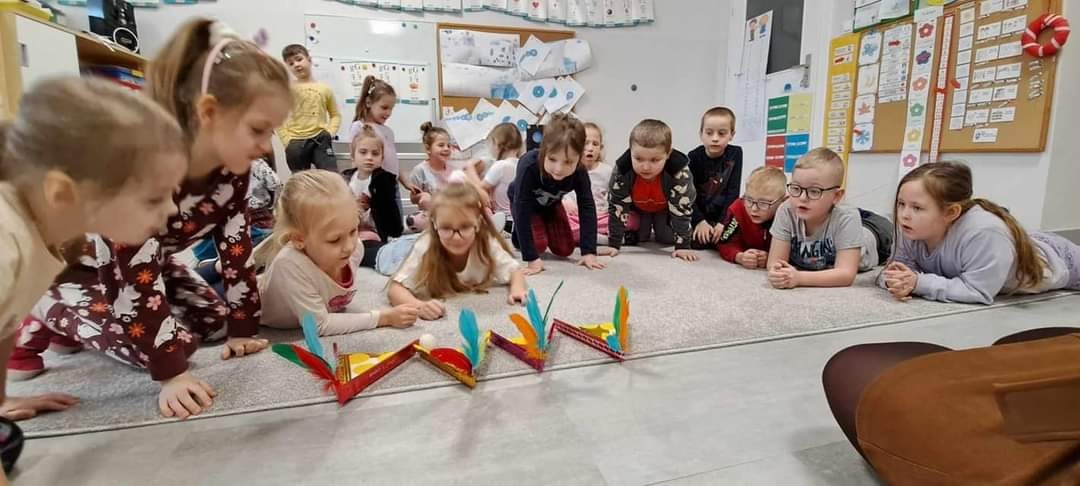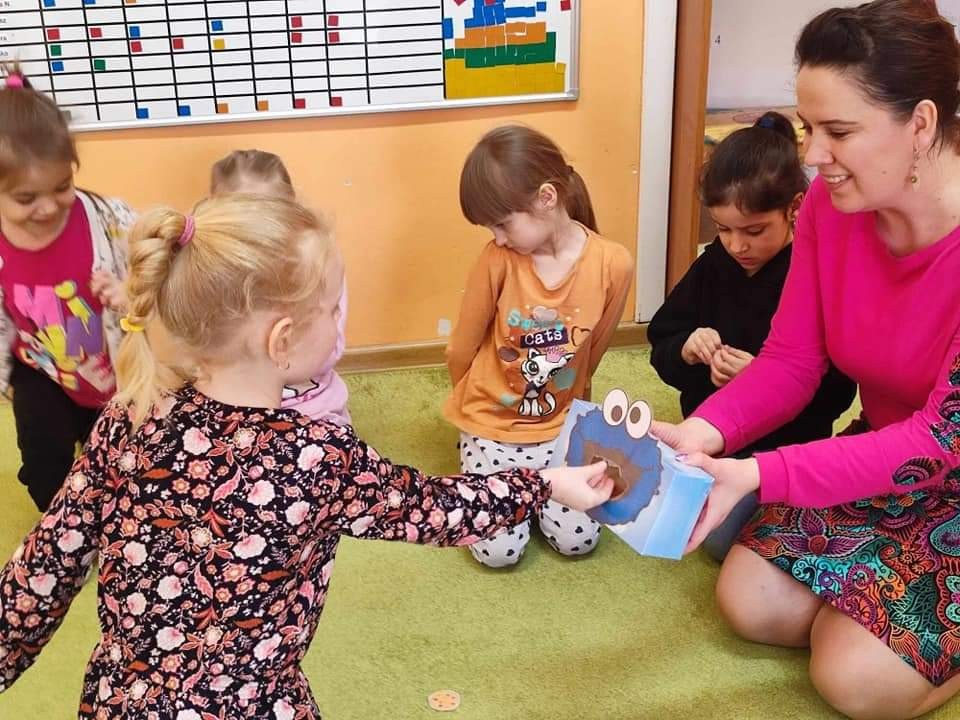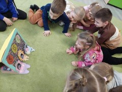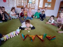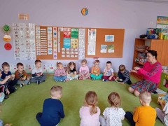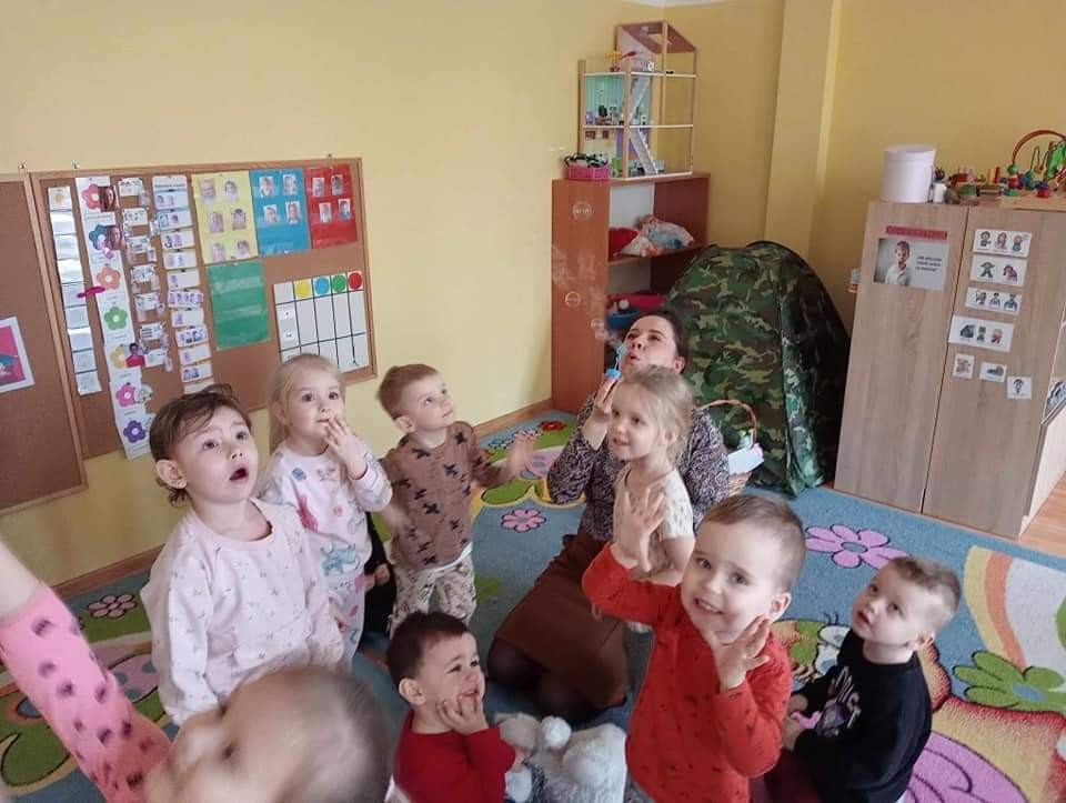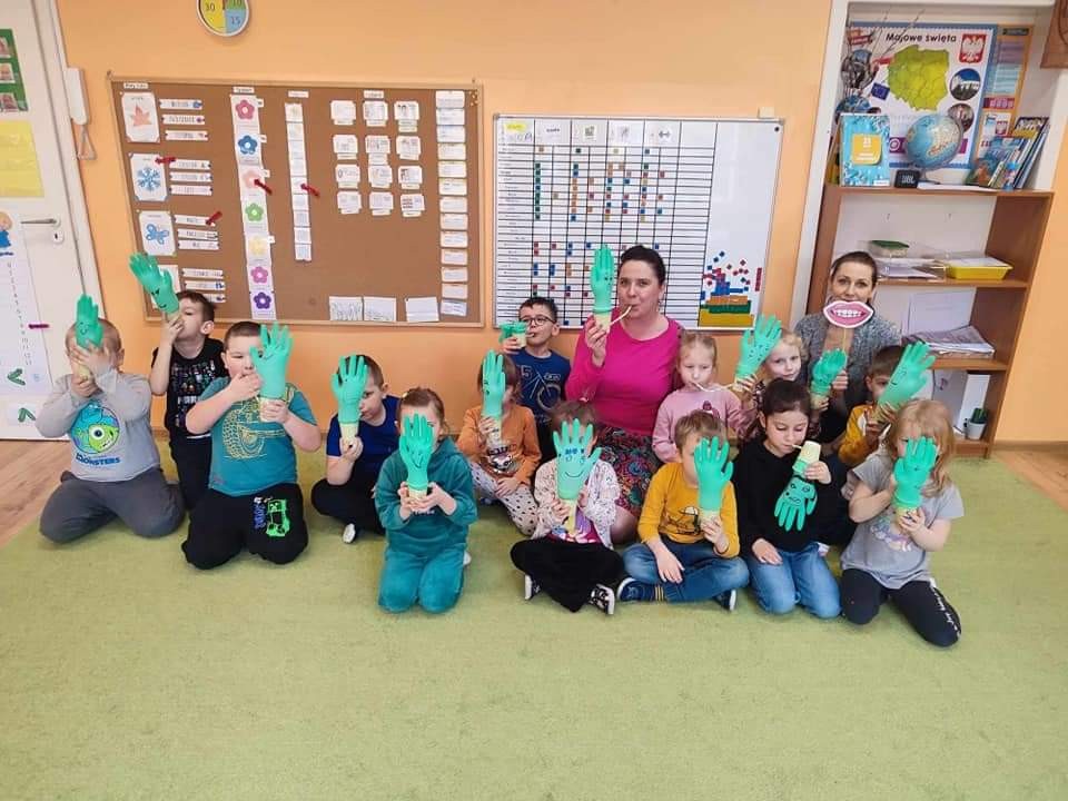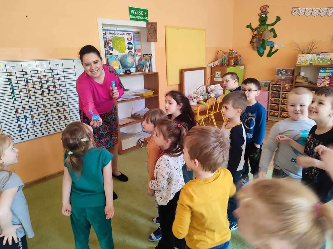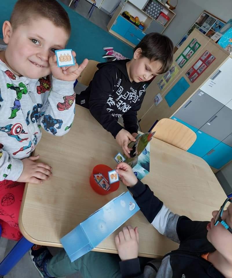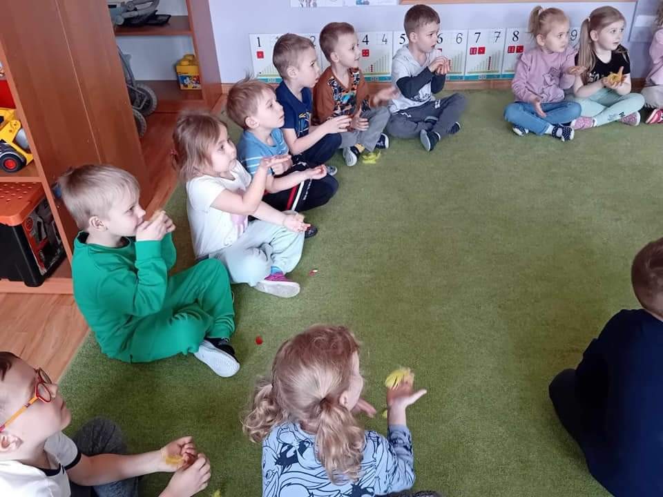 Najwięcej radości sprawiły dzieciom zabawy oddechowe, artykulacyjne i logorytmiczne przygotowane przez panią Sylwię, naszą przedszkolną logopedę.