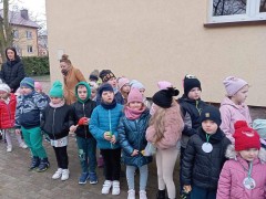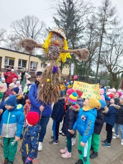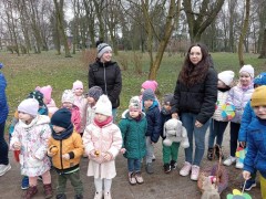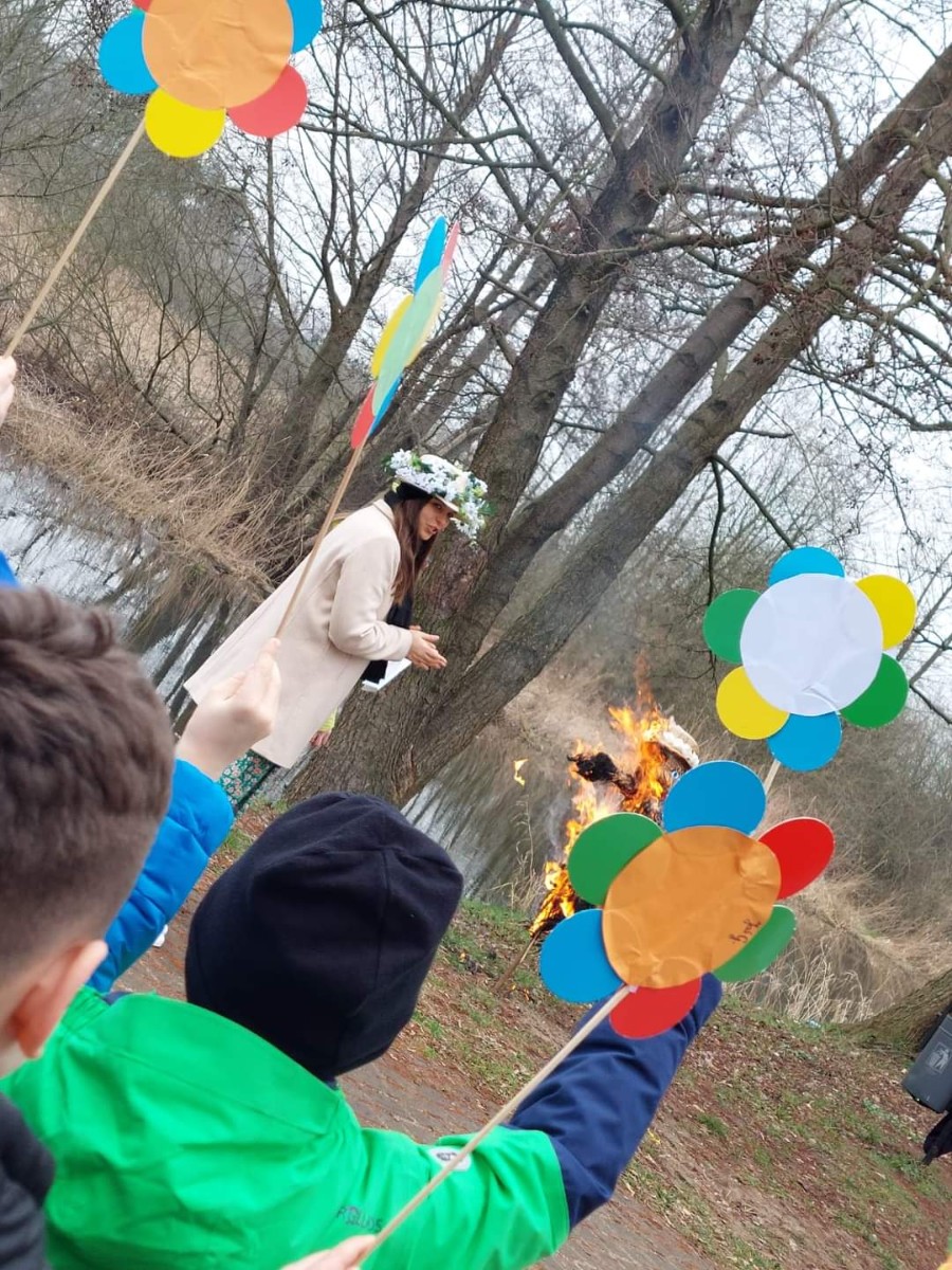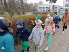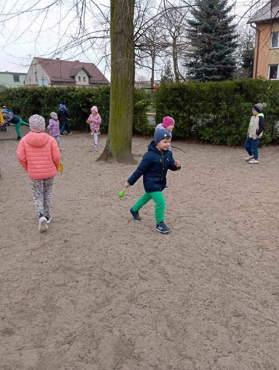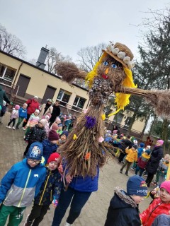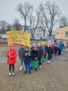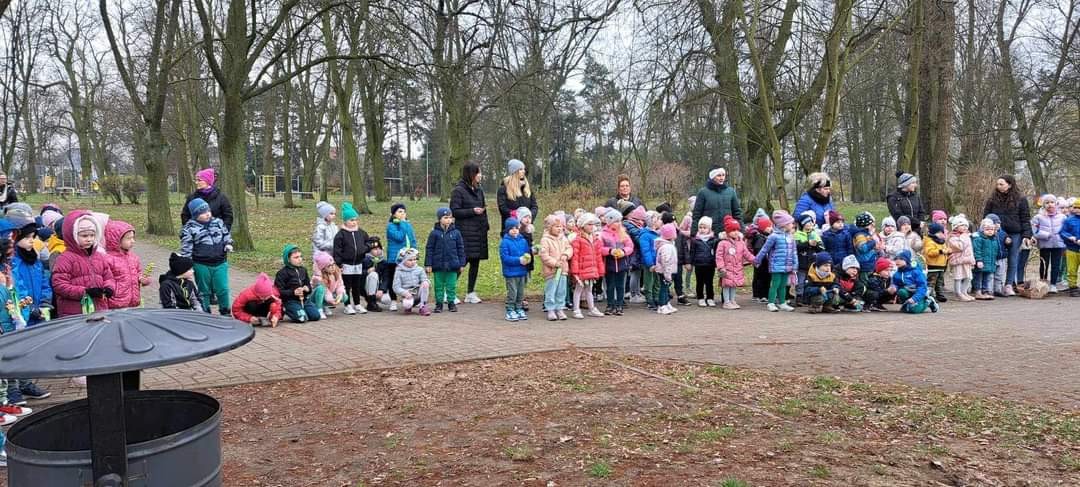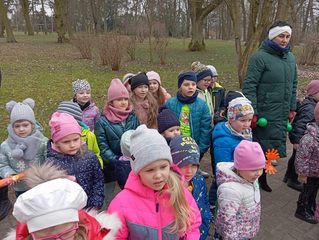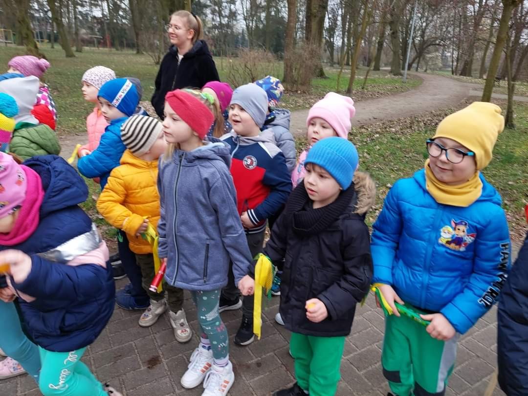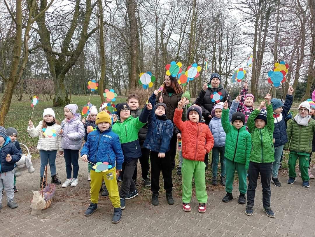 Uroczystość powitania Wiosny rozpoczęła się od gry terenowej "Zagubione kwiatki" oraz od odśpiewania piosenki "Maszeruje wiosna". Następnie wszystkie grupy wyruszyły barwnym korowodem do parku, aby powitać wiosnę.