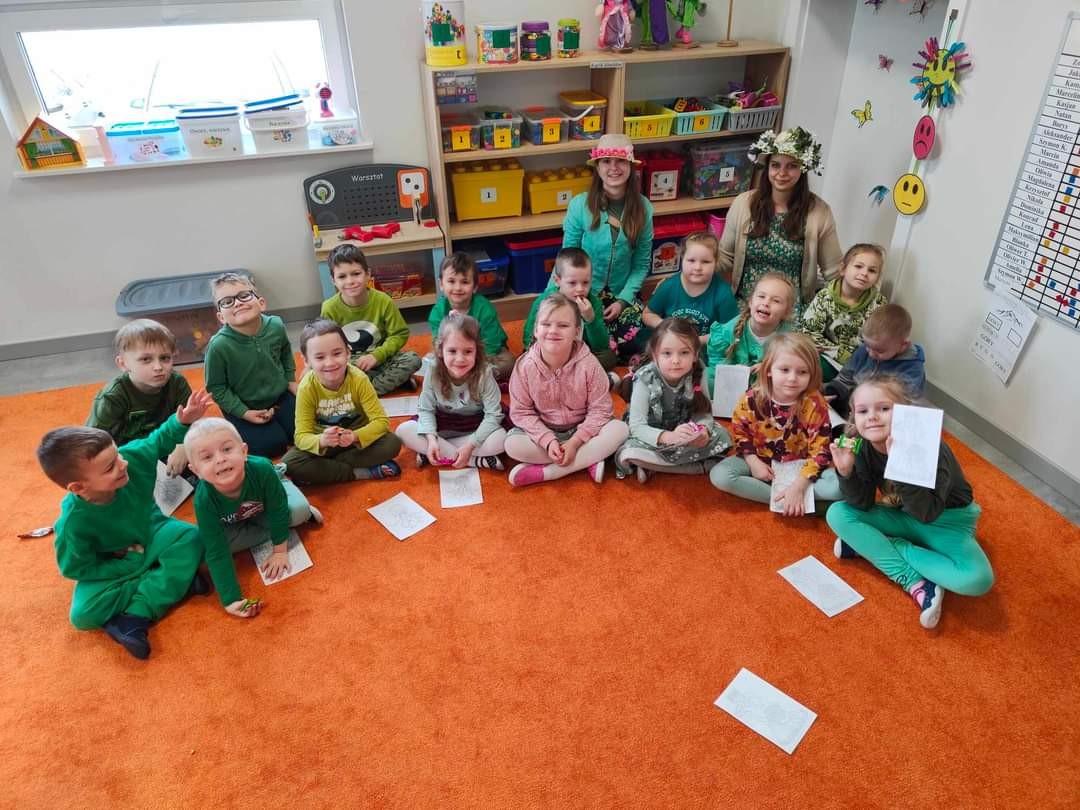 W czwartek 21 marca wszystkie przedszkolaki świętowały Pierwszy Dzień Wiosny. Aby podkreślić charakter tego dnia, dzieci przyszły ubrane na zielono.