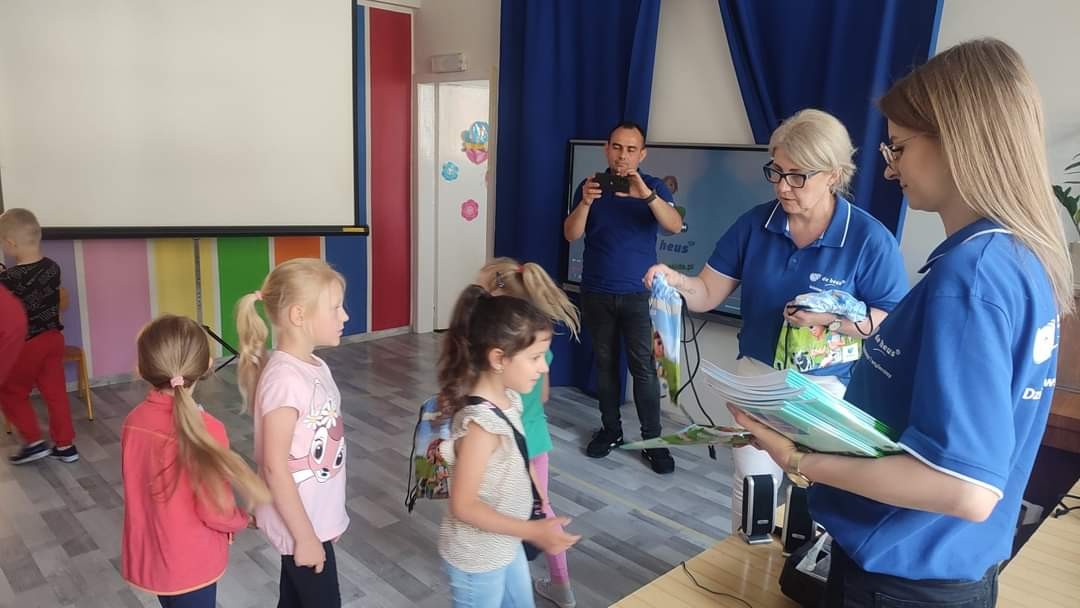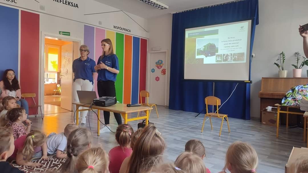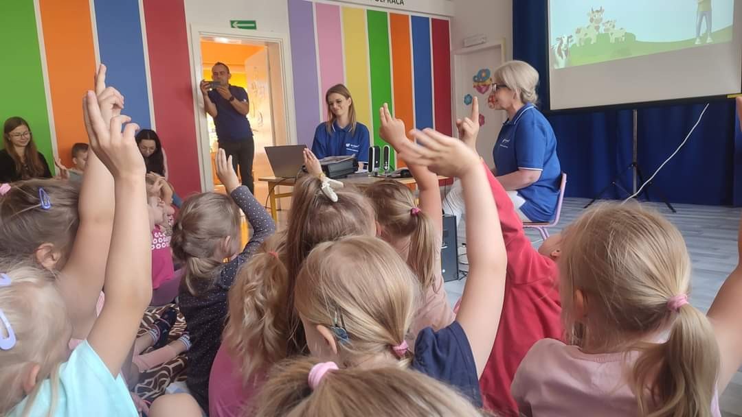 Dnia 14.06.2024 r. gościła w naszym przedszkolu firma De Heus z zajęciami edukacyjnymi "Działamy i wspieramy". Prowadzący zajęcia, pokazali dzieciom "Skąd się bierze mleko" i "Skąd się biorą jajka". Przedszkolaki z zaciekawieniem uczestniczyli w zajęciach, rozwiązywali zagadki.