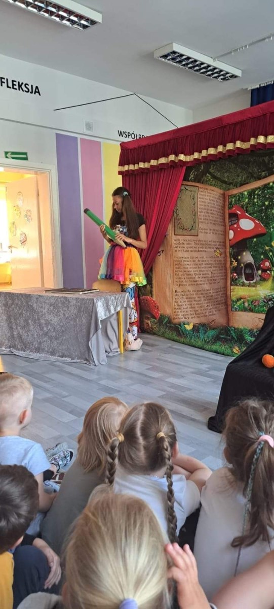 Dnia 14.06.2024 roku w naszym przedszkolu zagościł Teatr Magiczna Scena ze spektaklem profilaktycznym pt. "Księga życzeń". "Księga życzeń" to wypełniona akcją i muzyką bajka mówiąca o przyjaźni, dobrym zachowaniu - w szczególności o szacunku do starszych i drugiego człowieka.