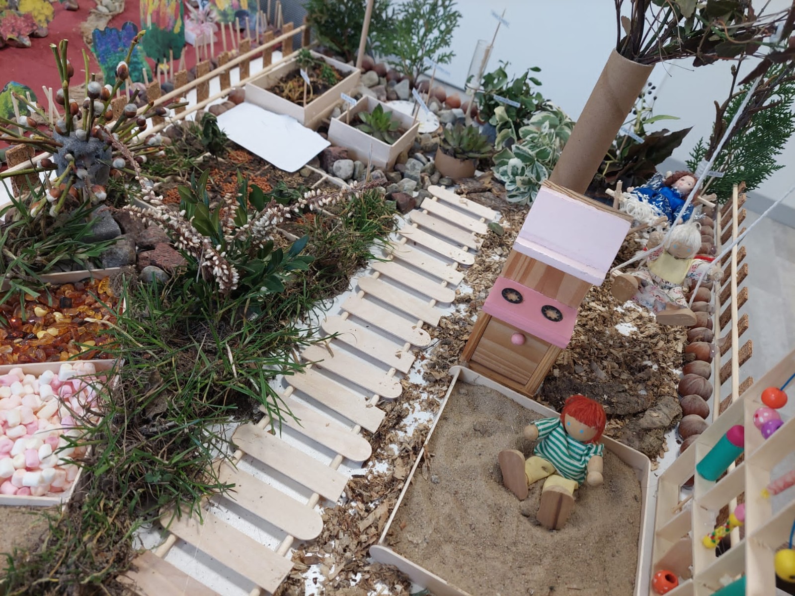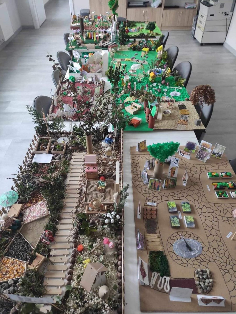 Ponadto komisja wyróżniła pracę rodzinną – Borysa Januszewskiego z grupy Motylków. Dziękujemy wszystkim wykonawcom makiet ogrodów „Harmonia natury” za wkład pracy, oryginalne rozwiązania i zaangażowanie w działania projektowe. Makiety będą stanowiły inspirację dla wykonawców ogrodu ekologicznego, który będzie służył naszym przedszkolakom. Zwycięzcy otrzymają nagrody i pamiątkowe dyplomy za udział w konkursie podczas uroczystego otwarcia „Ekologicznego ogrodu zmysłów” w dniu 22 kwietnia 2024r.