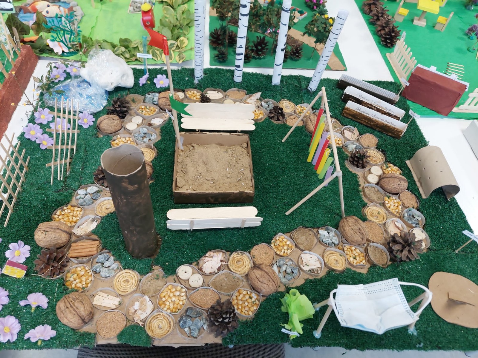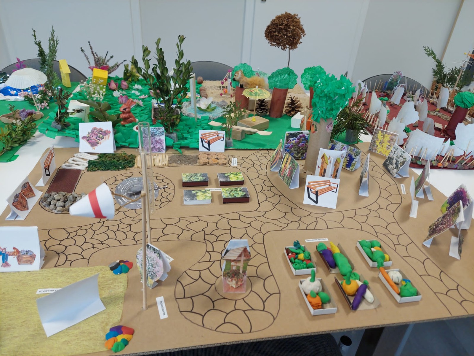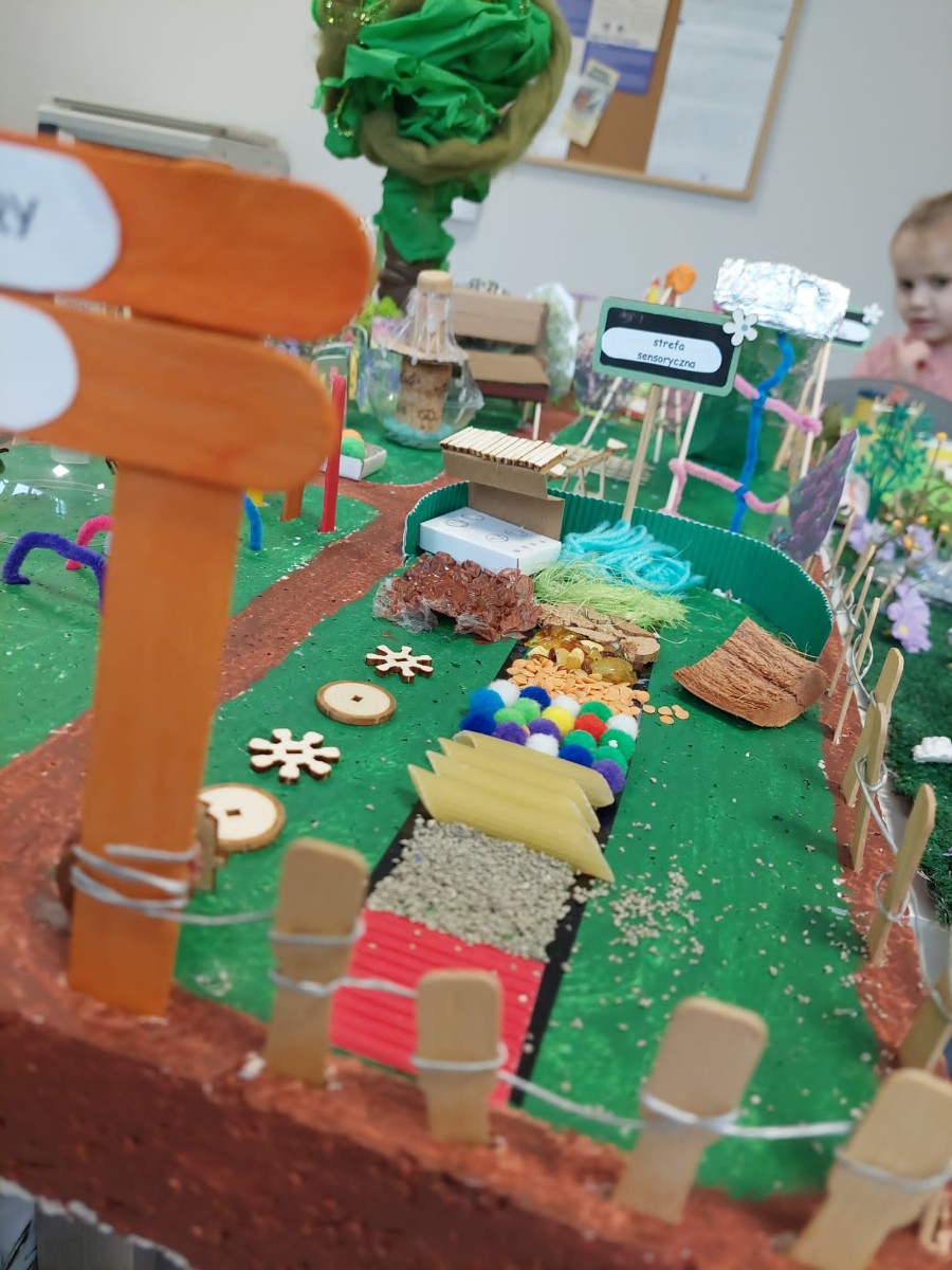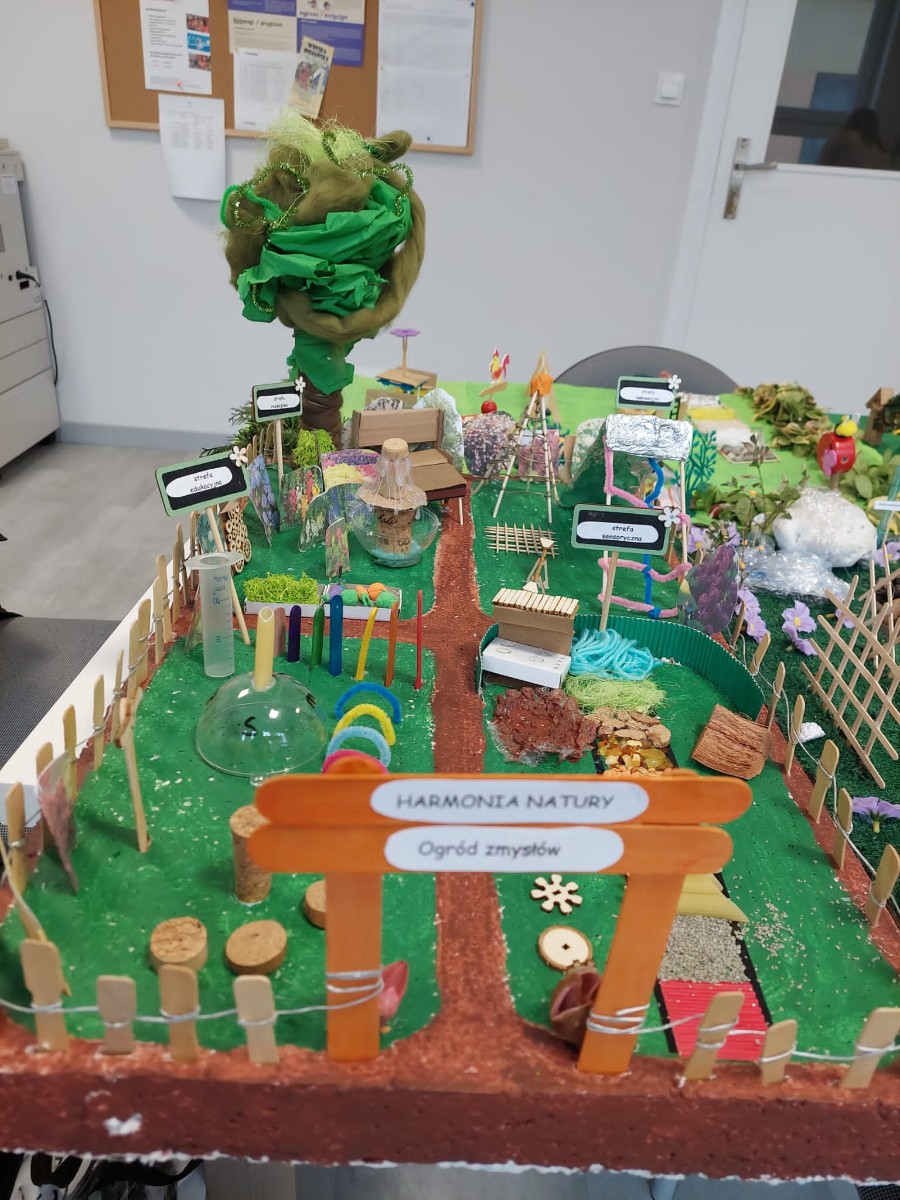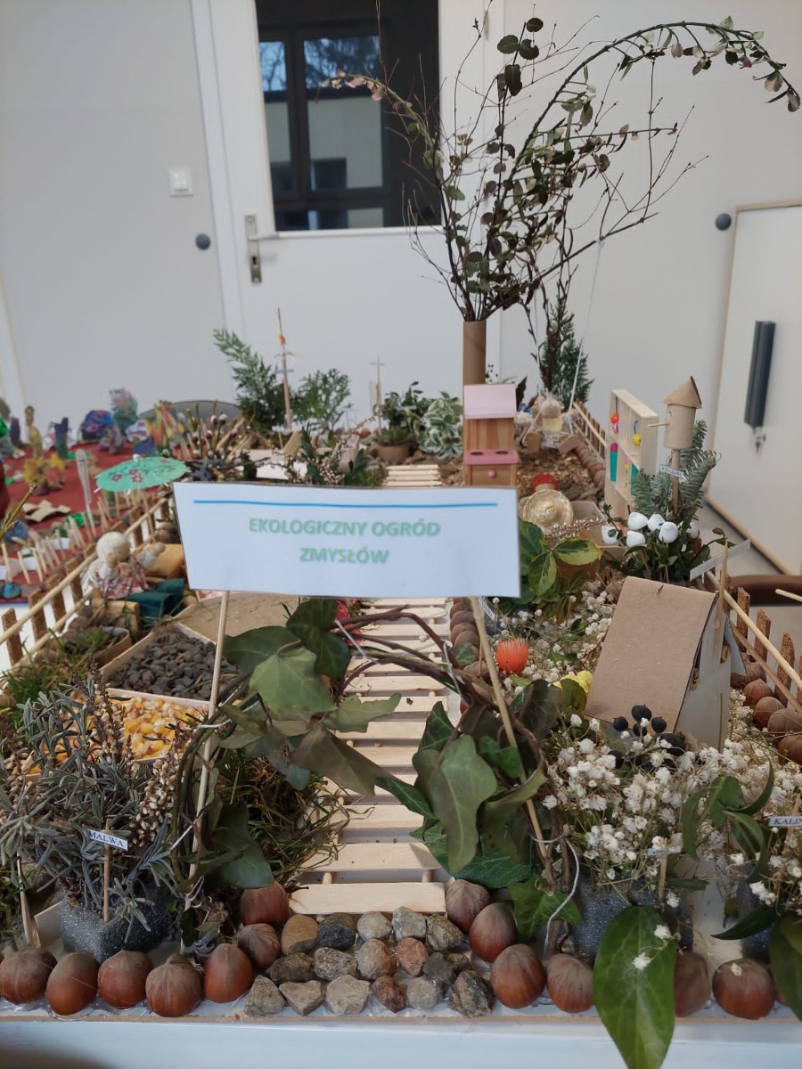 Na konkurs plastyczny - projekty przestrzenne ogrodu zmysłów – wpłynęło 10 makiet (1 makieta rodzinna i 9 makiet grupowych z poszczególnych grup przedszkolnych). Koordynatorem konkursu była p. Aleksandra Tyrakowska.