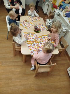 W dniu 27.02.2025r. w żłobku świętowaliśmy Tłusty Czwartek. Dzieci w przystępny dla siebie sposób zapoznawały się z tradycjami tego dnia i zajadały się pysznymi pączkami.