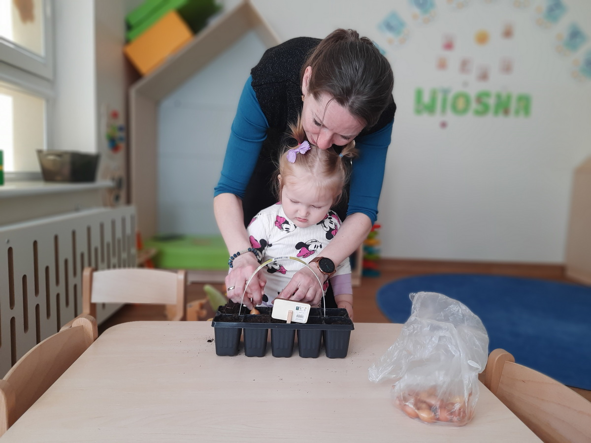 Z pomocą Cioć wykonały makaronową pisankę wielkanocną, ozdabiały baranka, same siały i obserwowały jak rośnie rzeżucha. Największą radość sprawiły jednak maluszkom wielkanocne upominki od Zajączka.