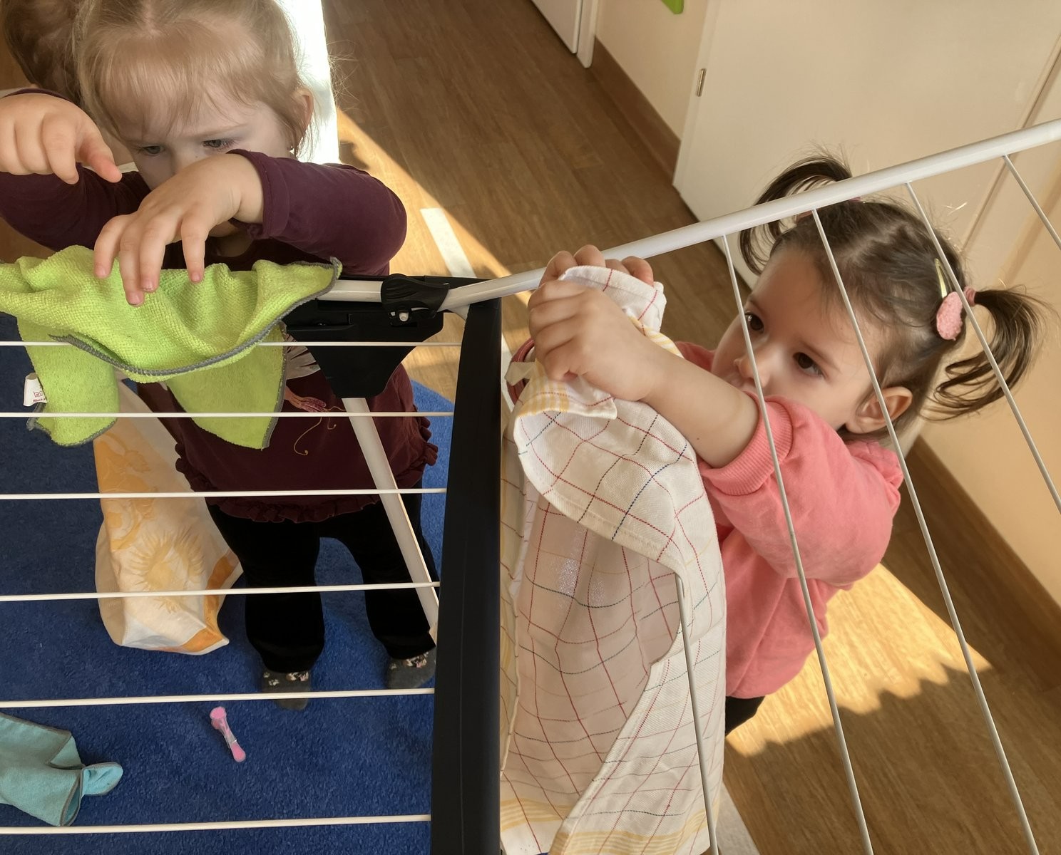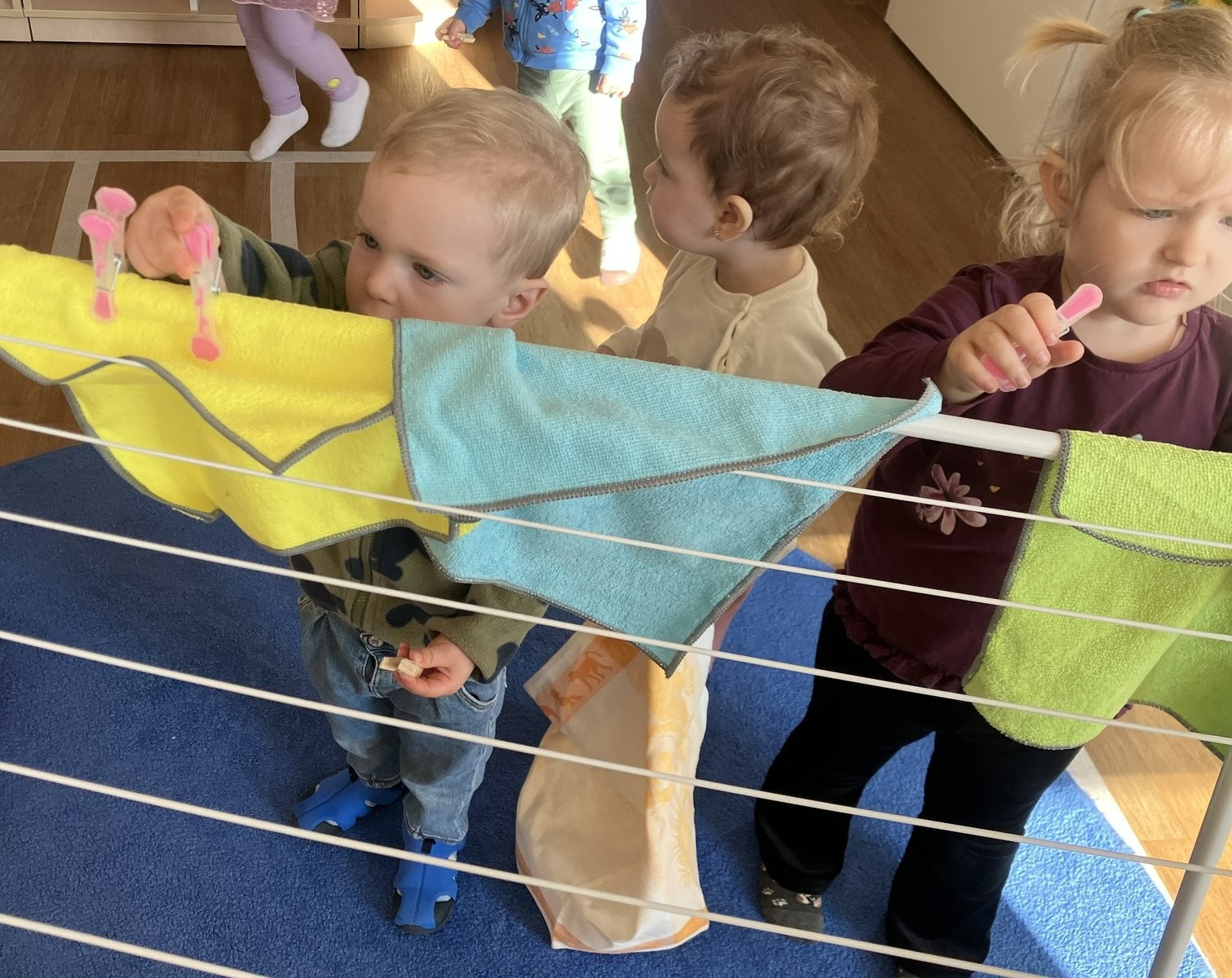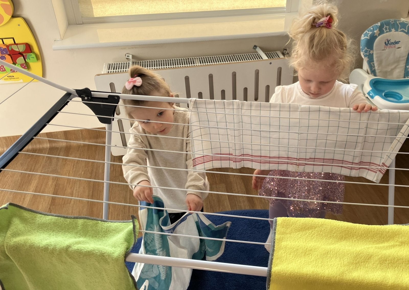 - Rozwieszaniu prania: Po zakończonym praniu, nasze "Słoneczka" miały okazję rozwiesić świeżo wyprane ubrania na suszarce.